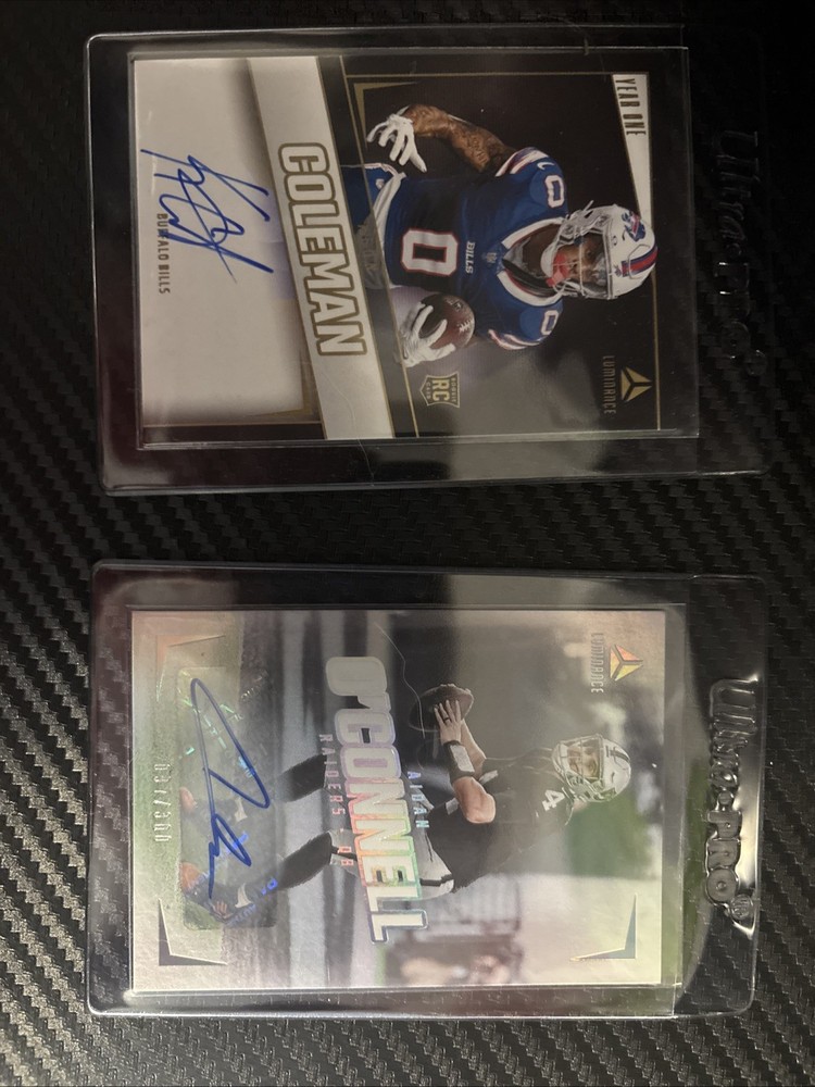 (NAME YOUR PRICE ON WHOLE LOT OR SINGLES) NFL AUTOGRAPHED LOT including Panini Luminance, Certified, Topps Chrome, Topps Composite, Hit and Leaf Draft. Keon Coleman, Aidan O’Connell, Nate Wiggins, Warren Moon, James Franklin, Dan Pastorini, D.J. Fluker, Lecitus Smith, Montee Ball, James Franklin, Nick Kasa