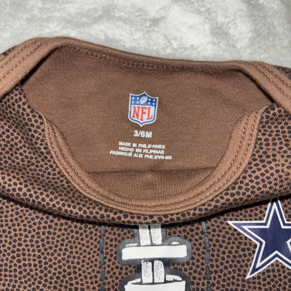 MPN:Does Not ApplyStyle:One-PieceMore Info:See below for more detailsType:Outfit/SetCountry of Origin:ChinaMaterial:CottonBrand:NFLPattern:footballSize Type:RegularModified Item:NoColor:BrownDepartment:BoysDesign Features:footballClosure:ButtonTheme:Sports, football, dallas cowboysSleeve Length:Short SleeveNeckline:Crew NeckSize:3-6 Months