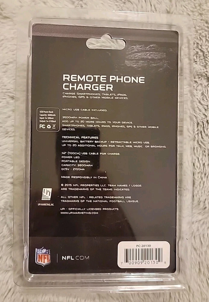 GO BUCS!!! Get ready for game day with this NFL Tampa Bay Buccaneers Backup Battery Charger. This high-capacity 3600 mAh charger is perfect for your smartphoneS, tabletS, iPadS, iPhones, and other mobile devices. It's officially licensed by the National Football League (NFL) and features the team's colors of football brown. This unisex adult charger is a must-have for any NFL fan, whether you're watching the game at home or at the stadium. With its sleek football design and powerful charging capabilities, this backup charger is the perfect addition to your NFL fan gear fun collection. Condition is Original Brand NEW factory sealed in original packaging FREE Domestic Shipping from Florida USA (International buyers pay through eBay Global Shipping Program) Check our store for more similar items at: www.ebay.com/str/balsolent