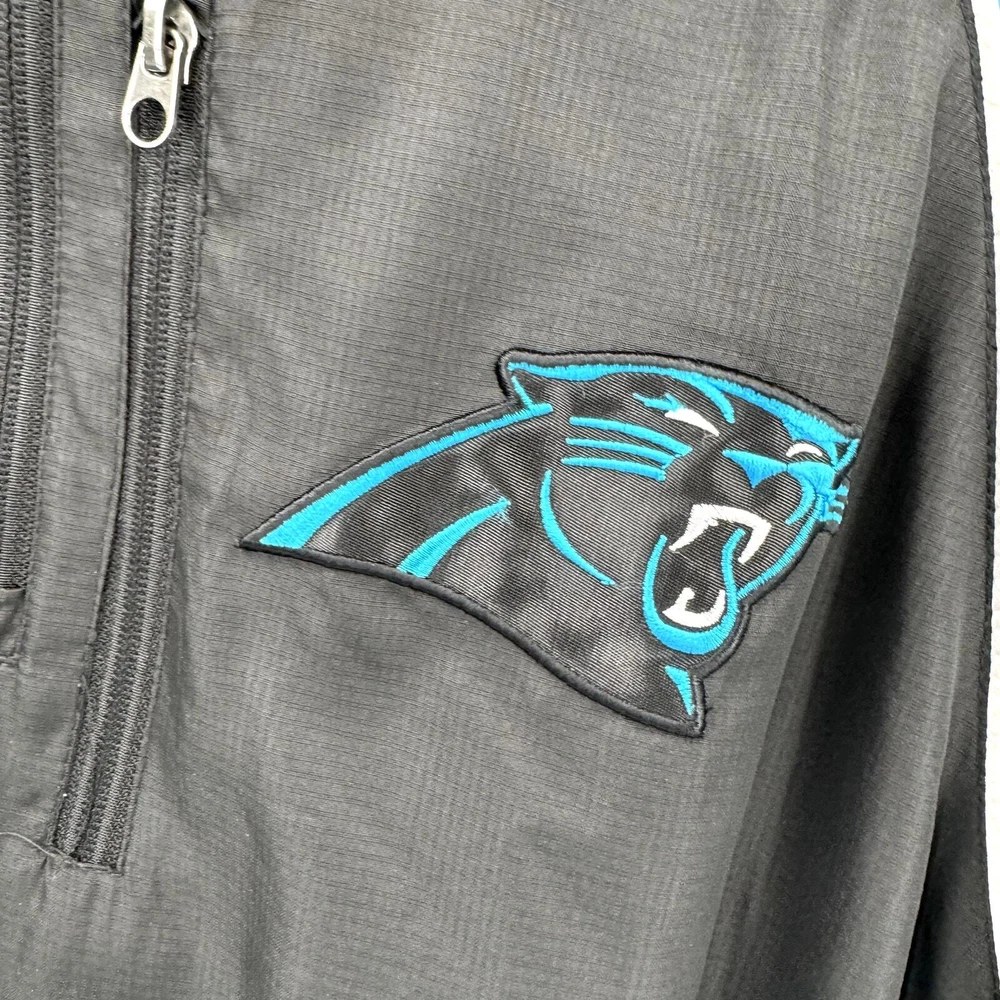 NFL Carolina Panthers Jacket Mens Large 1/4 Zip Pullover Black Blue Windbreaker Very good condition, see all pictures for views. WRITING IN MARKER ON INSIDE TAG. •Pit to pit: 24" •Shoulder to hem: 29" Ships out same day or next open postal day. Thank you for your purchase, we appreciate you!
