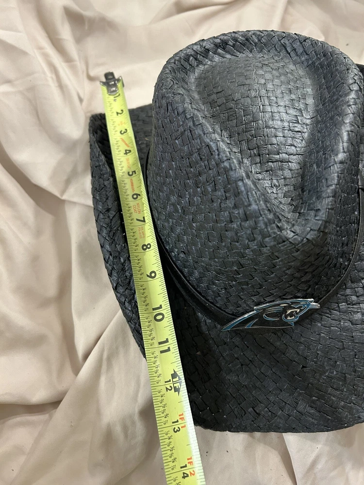 Show your support for the Carolina Panthers with this official NFL straw cowboy hat. The black color and one size fits all design make it a perfect addition to any fan's collection. Represent your favorite team during regular season games or simply add it to your sports memorabilia collection. Made in China and featuring the Carolina Panthers team logo, this hat is a must-have for any NFL fan.