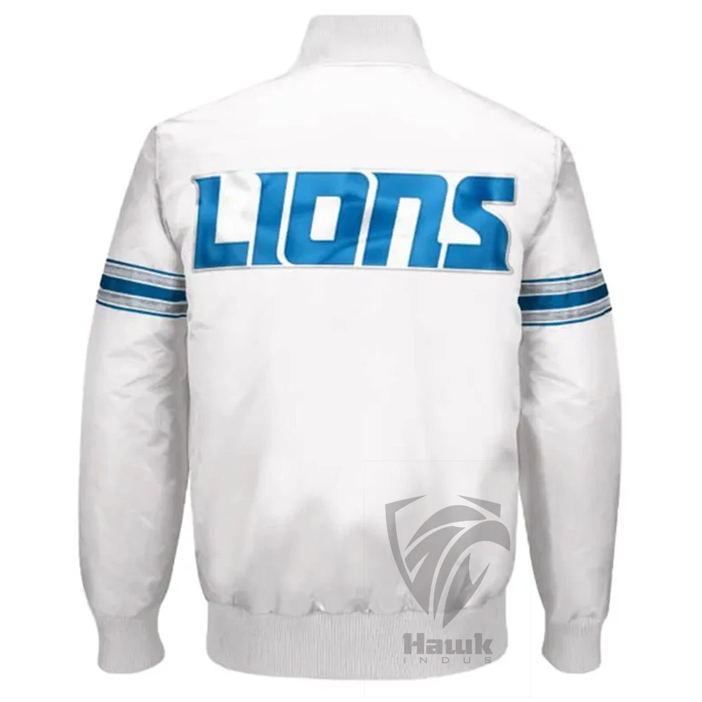NFL Detroit lions White Satin Varsity Jacket full-snap Embroidery logos NFL Classic vintage style varsity jacket Elegant look Embroidery logos Outer Premium Satin Fabric Inside 100g quilting & satin blended lining Front matched snap 2 external pockets & 1 internal mobile pocket Premium quality polyester rib collar , cuff & bottom Custom Orders are very welcome with respect to time and cost factors. About Sizing: Please make sure check Size chart carefully before ordering if still you have any confusion Please message us on eBay we we will suggest you size according to your body measurements. Return Policy: You are fully protected with eBay 30 days return policy shop with confidence.