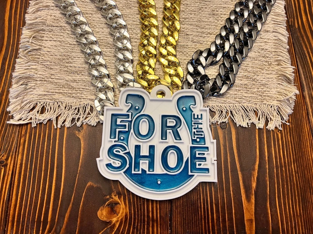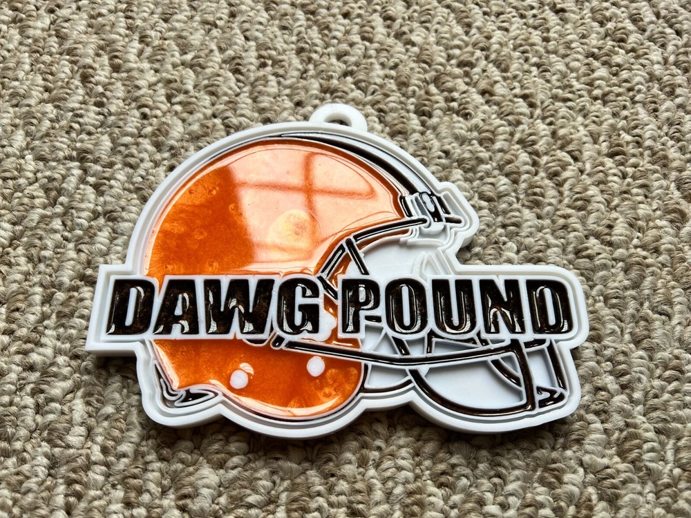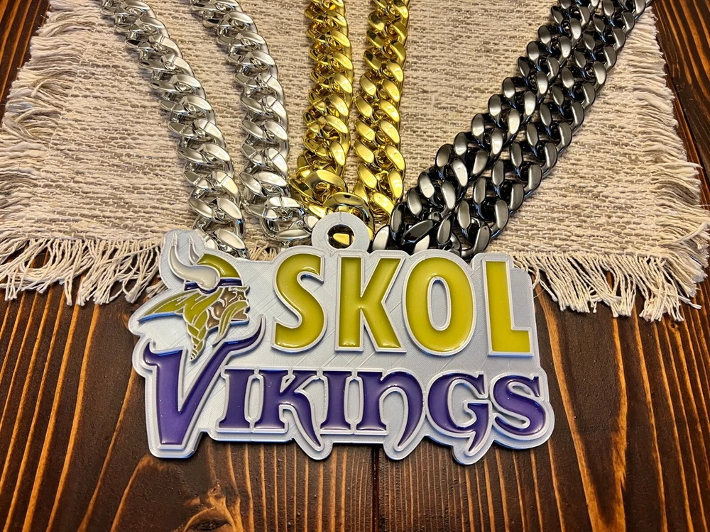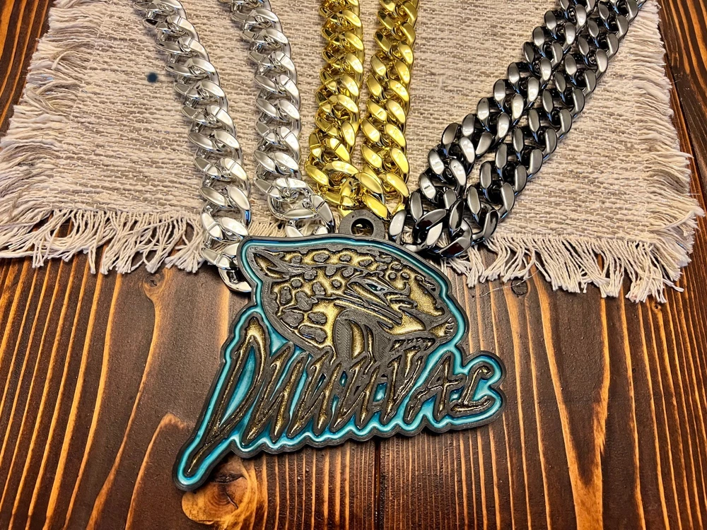 Tired of those cheap foam medallions always ripping and tearing? These solid 3D printed swag chains will last for seasons! Is your friend or family member a huge football Fan? Whether a birthday, Christmas or simply celebrating the start of the new season, our 3D printed Medallions make the perfect gift! These PLA and Epoxy logos can also serve as the perfect addition to any fan cave. Each medallion is approximately 6x6 inches and weighs less than 1lb. Each one is hand-made in the USA and 3D printed, sanded, coated, primed, and painted by hand. The final step is the epoxy pour which leaves a custom one-of-a-kind granite effect. Each medallion has a unique finish and look so final results in the granite effect will vary. Do you want a custom swag chain with your own logo and text? Message me for details. At Fins Place Art we only use Artresin Epoxy which has passed the strict California Prop 65 testing. However, we will still include the warning for shipments going to California.