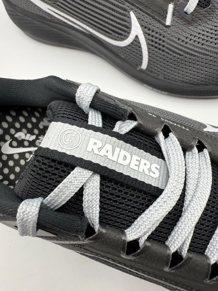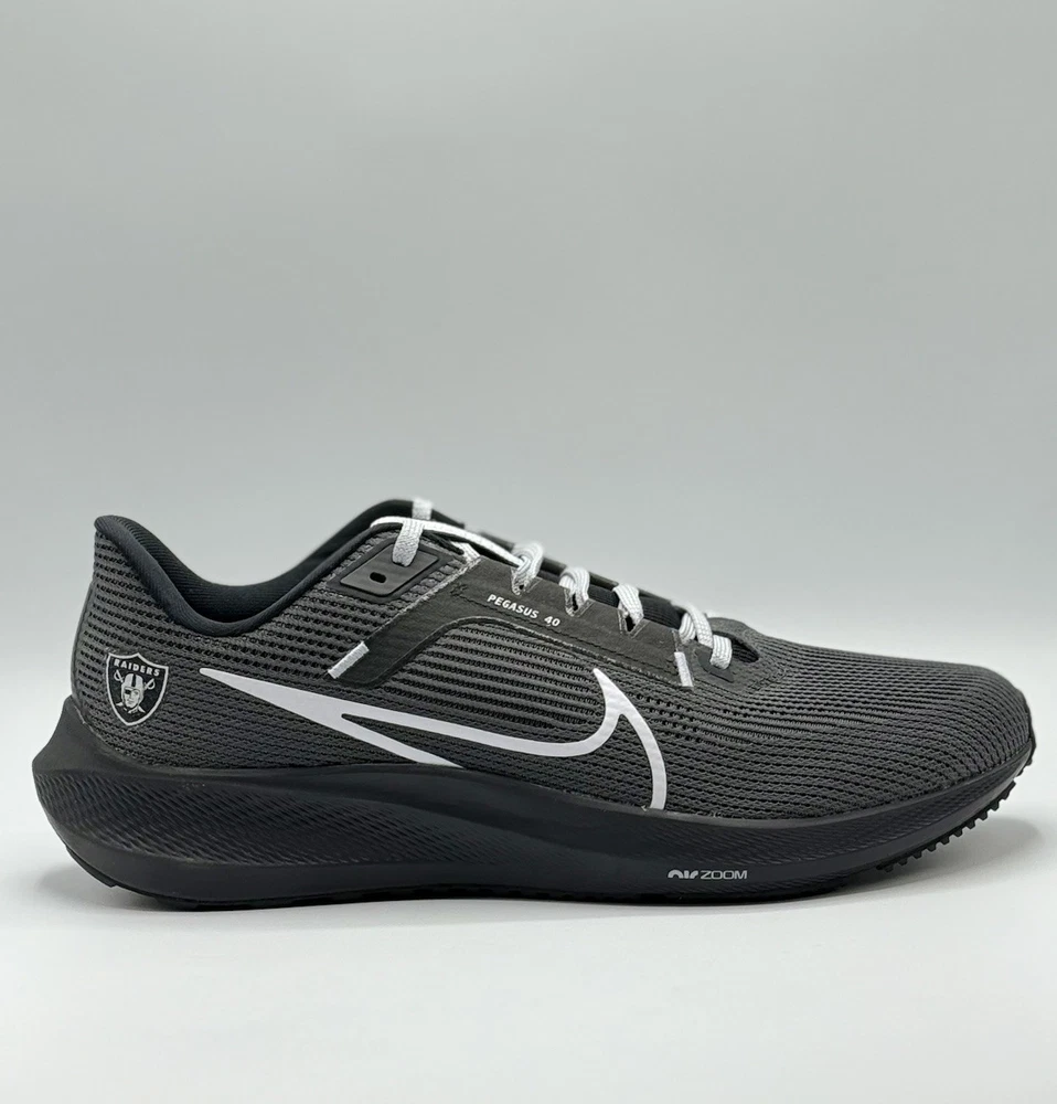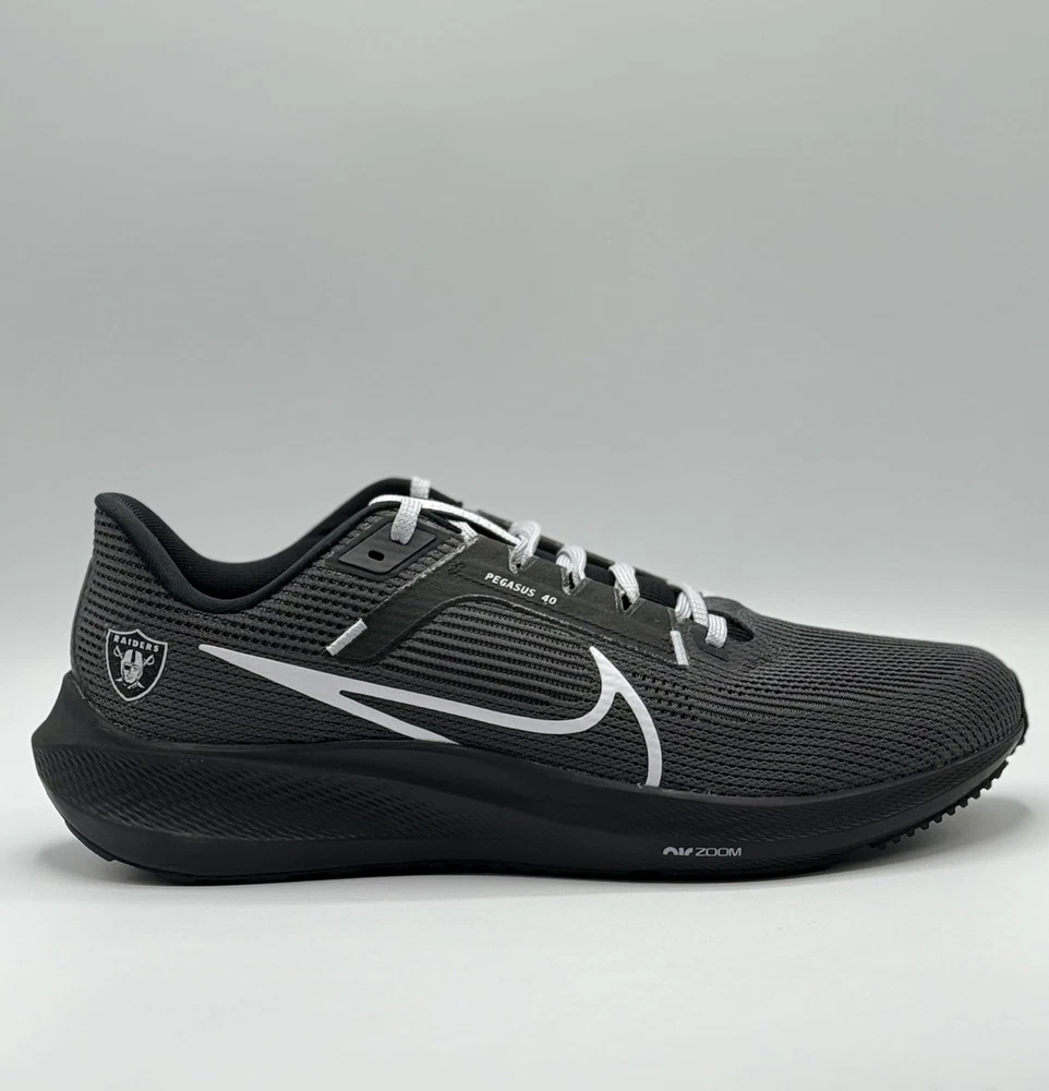 Men Size 12 DZ5953-001 The NFL x Nike Air Zoom Pegasus 40 Men's Size 12 Running Shoes in Las Vegas Raiders colors are designed for athletic activities such as running, gym training, and casual wear. These sneakers feature a lightweight and breathable mesh upper with a cushioned foam insole for comfort and performance. The rubber outsole provides traction and durability, making them suitable for various seasons and occasions. With a unique limited edition design and colorful theme, these sneakers are a stylish choice for sports enthusiasts and fans of the Las Vegas Raiders.