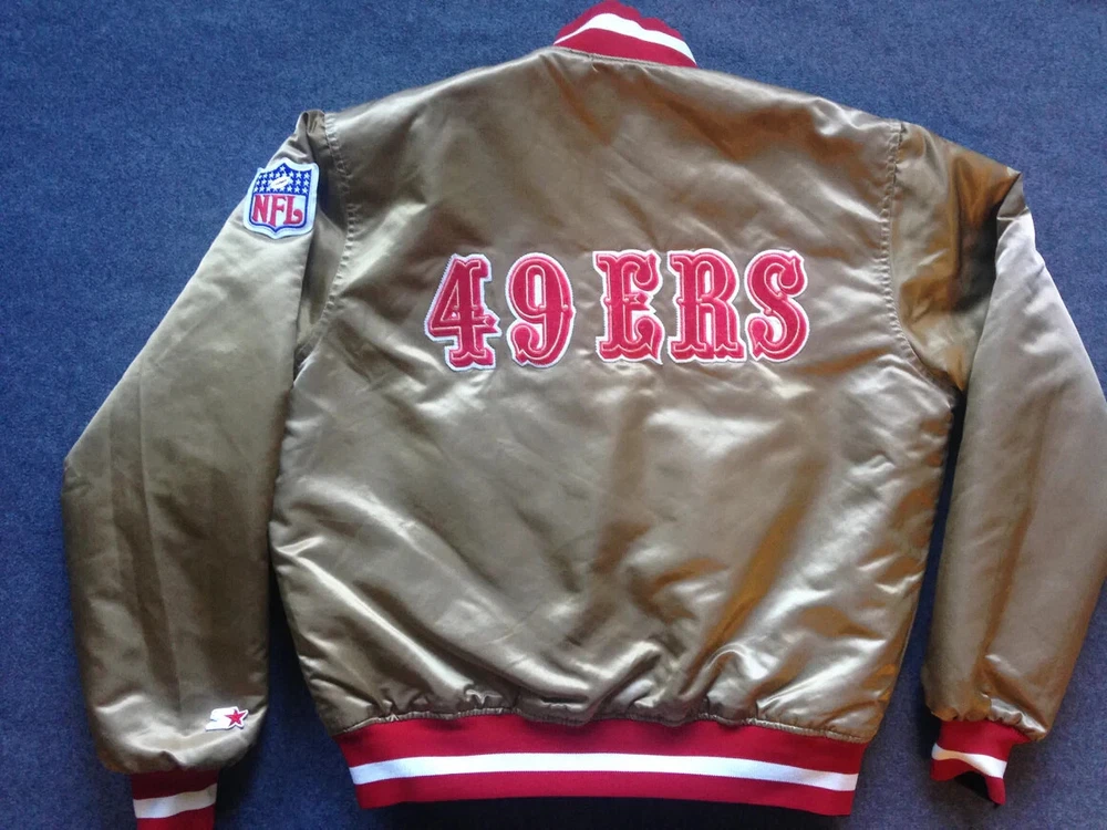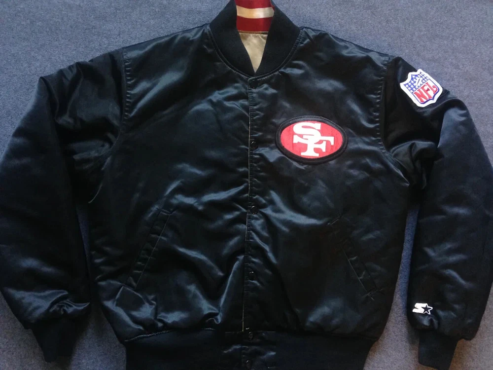 Description Step back into the 80s with this NFL 49ers San Francisco Reversible Satin Bomber Jacket. Featuring a classic gold satin on one side and a sleek black on the other, you get two looks in one. Perfect for 49ers fans or vintage style lovers, this jacket is made with high-quality materials for comfort and durability. Show your team pride and rock a bold, retro style with this must-have bomber. “If you’re looking for bulk orders at competitive prices, please get in touch. Thank you!”