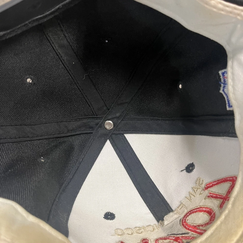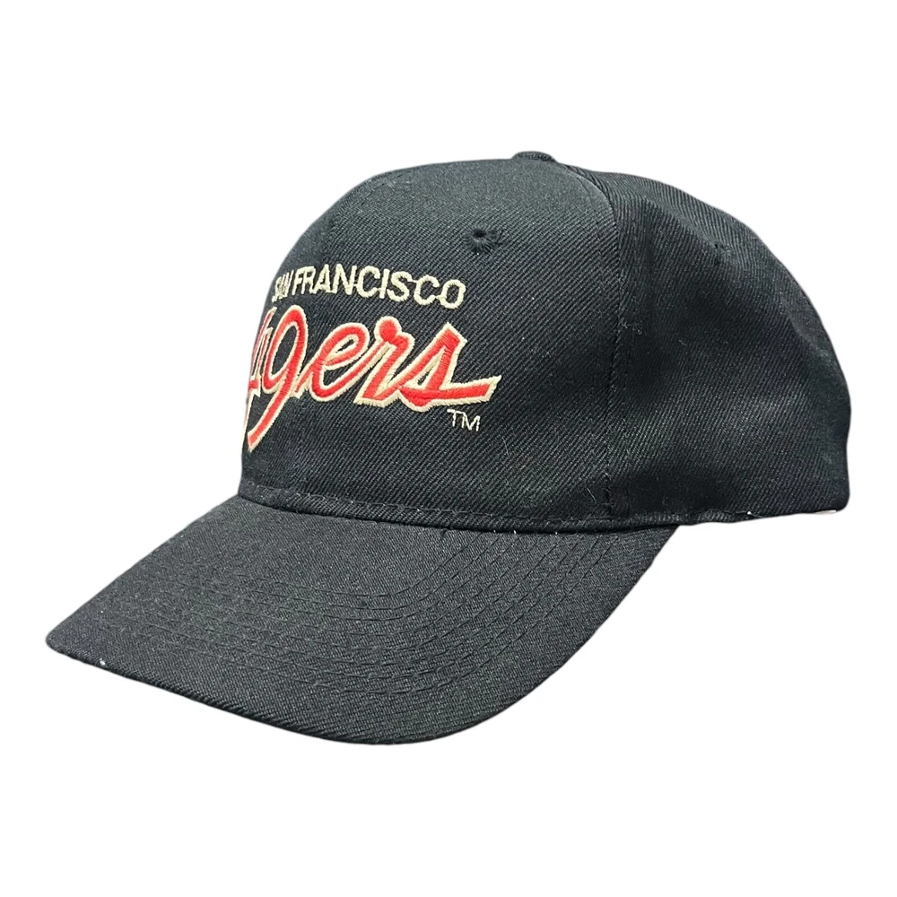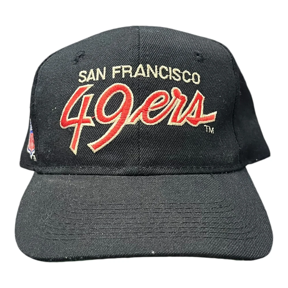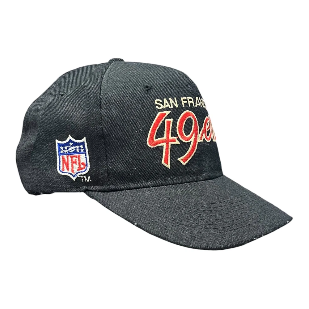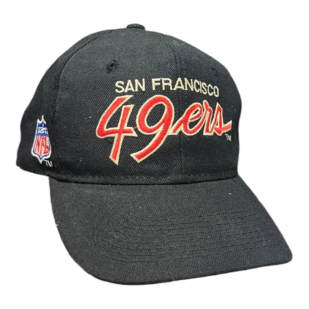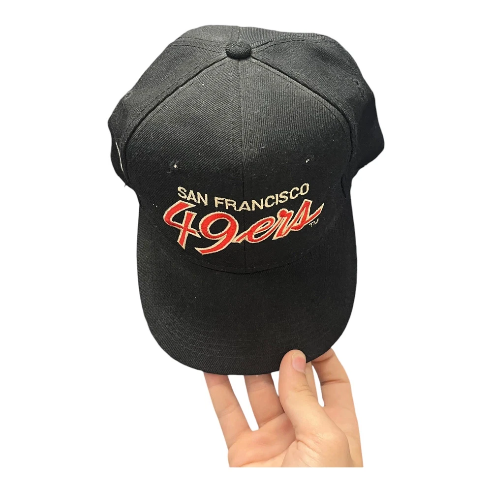 Great condition, some yellowing on front of inside, and stitching coming undone from inside, doesn’t affect wearability. Message me any questions! Show your love for the San Francisco 49ers with this officially licensed NFL Sports Specialties snapback. Featuring a double black dome design with script accents, this cap is perfect for any fan of the team. The adjustable size ensures a comfortable fit for all, while the black, gold, red, and white color scheme is sure to stand out. Crafted with high-quality materials, this snapback is perfect for football season and beyond. Whether you're watching the game at home or at the stadium, this cap is a must-have for any 49ers fan. Don't miss out on the chance to show your support for the team with this stylish and functional snapback.