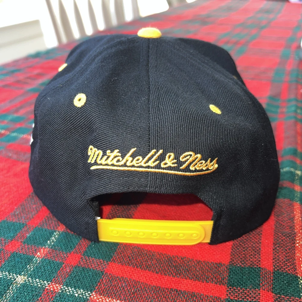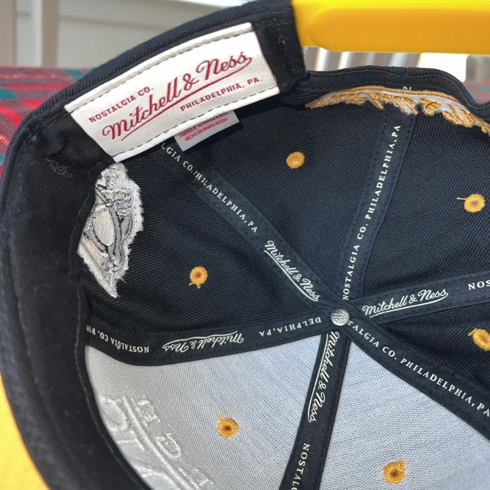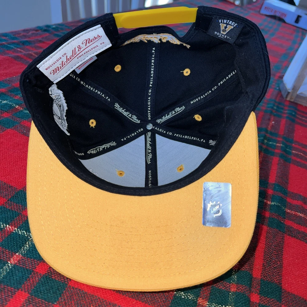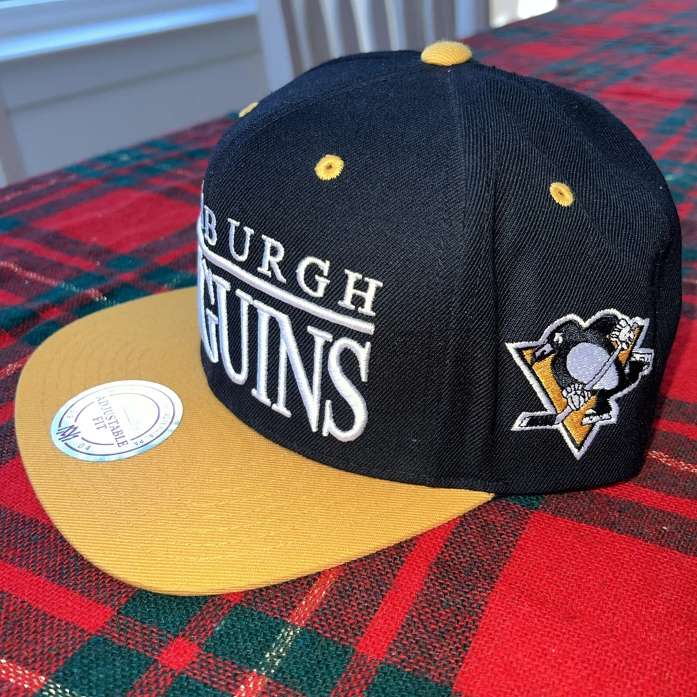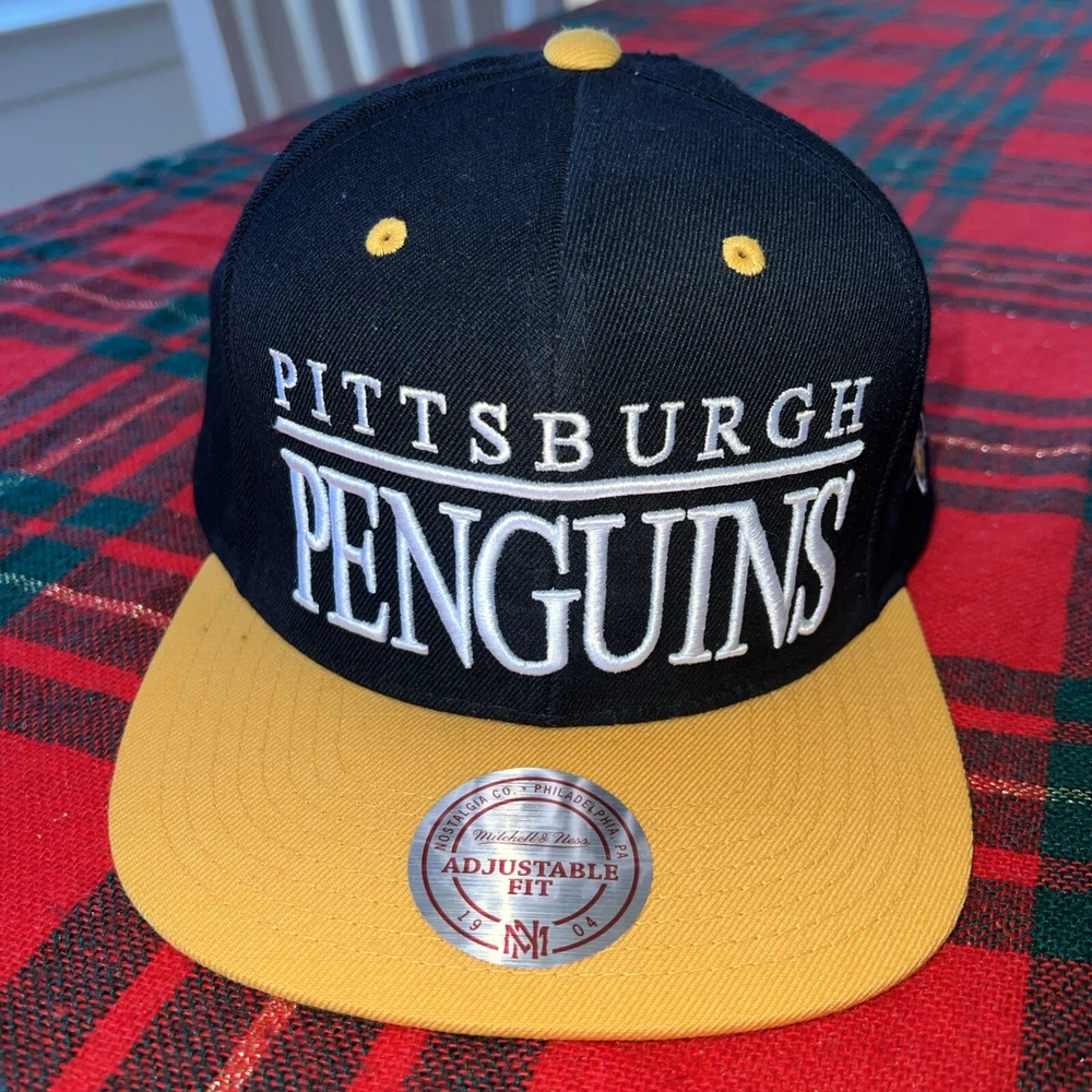 NHL Pittsburgh Penguins Mitchell Ness Vintage Logo SnapBack Hat Old School Font. Condition is Used. Shipped with USPS Ground Advantage.