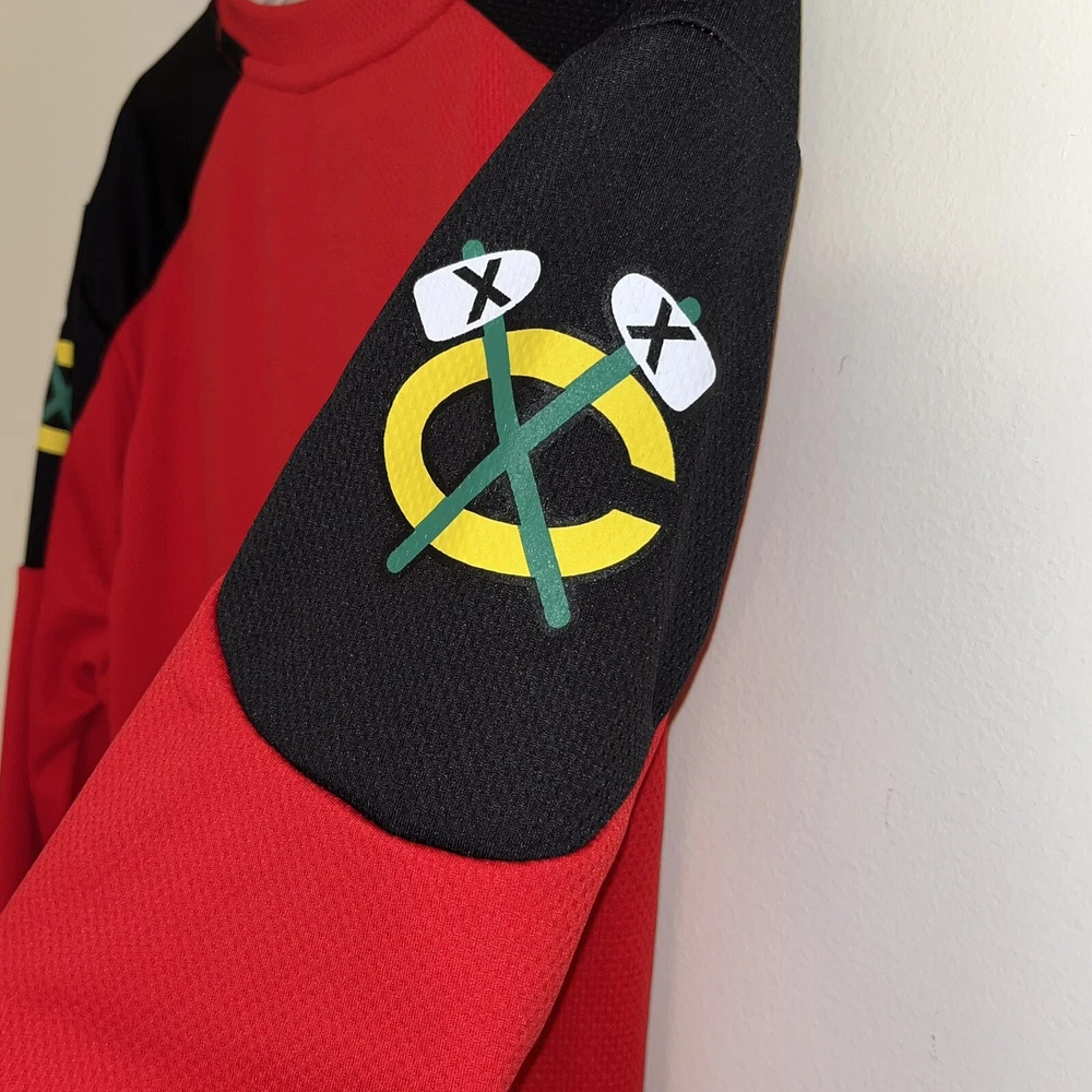 Color:RedCountry/Region of Manufacture:VietnamGender:BoysOfficially Licensed:YesSize:16Team:Chicago BlackhawksBrand:NHLProduct:JerseySport:HockeyLeague:National Hockey League (NHL)