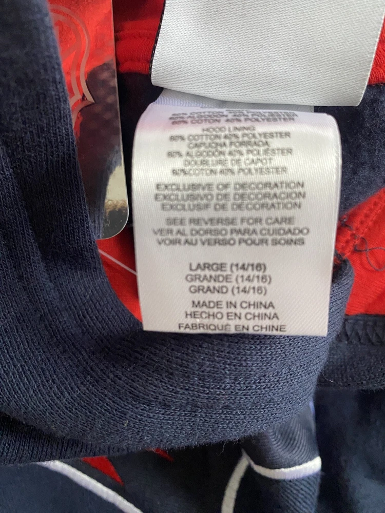 DESIGN Standard fit, hooded sweatshirt Warm, insulated hood Kangaroo pouch pocket Ribbed hem and cuffs STYLE AND TEAM SPIRIT Features team graphics Screen-printed graphics ADDITIONAL DETAILS Officially licensed product Country of Origin : United States of America Fabric : 100% cotton Brand : Outerstuff