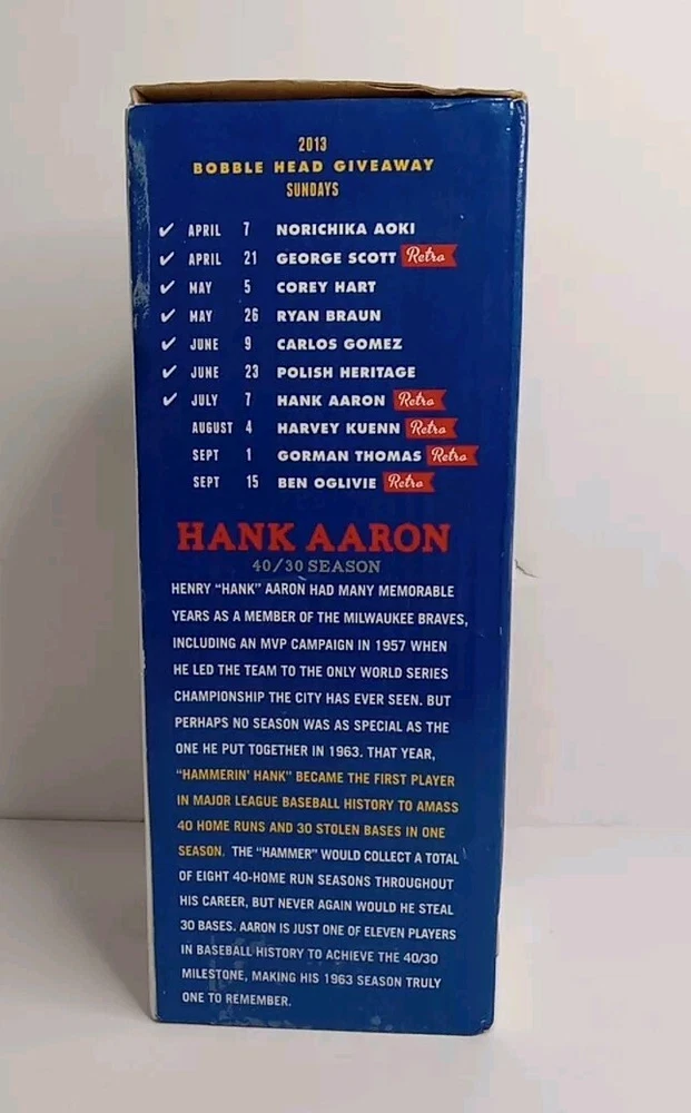 NIB 2013 Milwaukee Braves Brewers Hank Aaron Bobblehead SGA