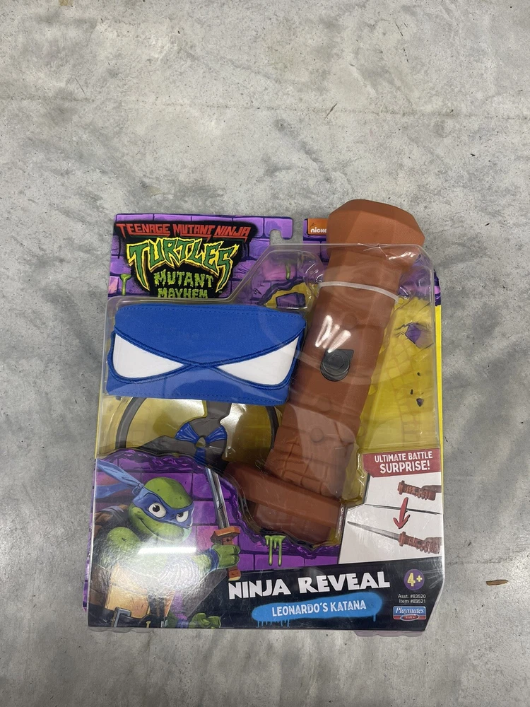 Get ready for some ninja action with this brand new Leonardo's Katana from the Teenage Mutant Ninja Turtles series. Made by Playmates Nickelodeon as part of their Mutant Mayhem line, this toy is perfect for kids aged 4 and up. It comes with a ninja reveal feature and is sure to provide hours of entertainment. The katana is made in China and is an excellent addition to any young TMNT fan's collection. This toy is in its original packaging and has never been opened. Dress up and get ready to fight crime alongside Leonardo and his turtle brothers with this amazing toy.