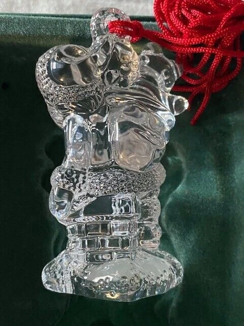Elevate your holiday decor with the Marquis Waterford Crystal American Santa Ornament, the first in a series of collectibles that capture the spirit of Christmas. Crafted with the meticulous care Waterford is known for, this piece features a charming Santa Claus shape, etched with precision into high-quality crystal. Its clear color and delicate design showcase the craftsmanship from Germany, presenting a touch of elegance to any festive setting. This 3-inch tall ornament is complemented by a width of 2.5 inches, striking the perfect balance for display on your Christmas tree or mantel. As a vintage piece, model 122098 serves as a timeless treasure or a thoughtful gift for collectors and enthusiasts of Waterford crystal ornaments. Embrace the holiday season with this exquisite addition to your Christmas collection. New in Box (may have some shelf wear) No Waterford booklets are included Listing and template services provided by inkFrog