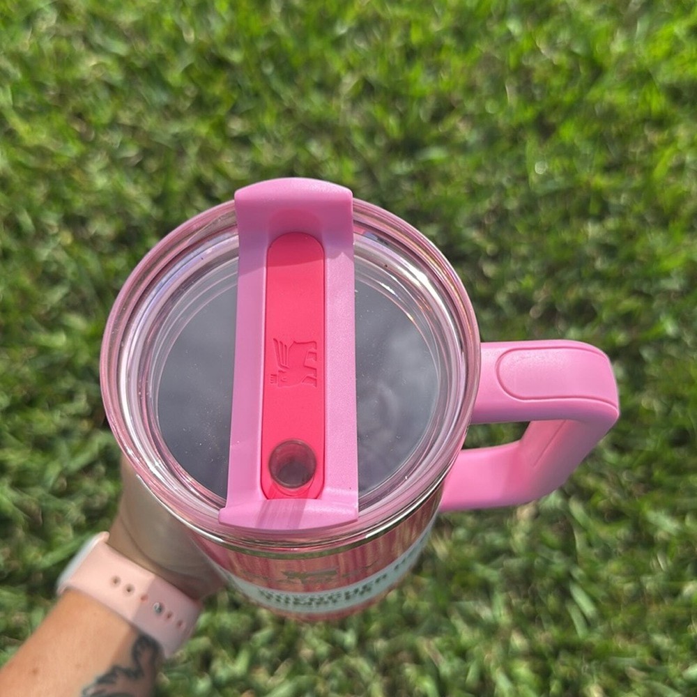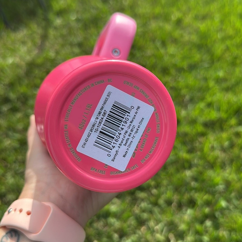 New in box Taken out for pictures 40oz - Pink Parade; Released 2023 - Pink straw included - Gold etched Stanley logo