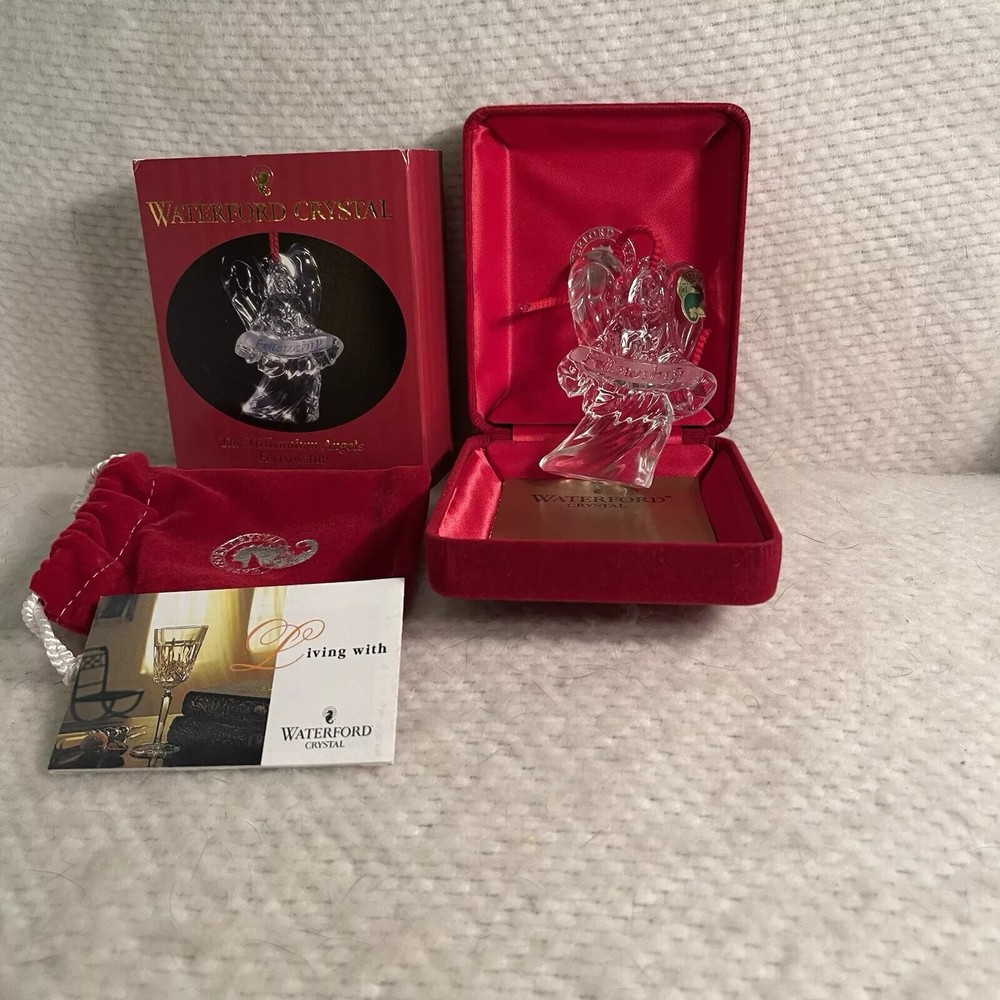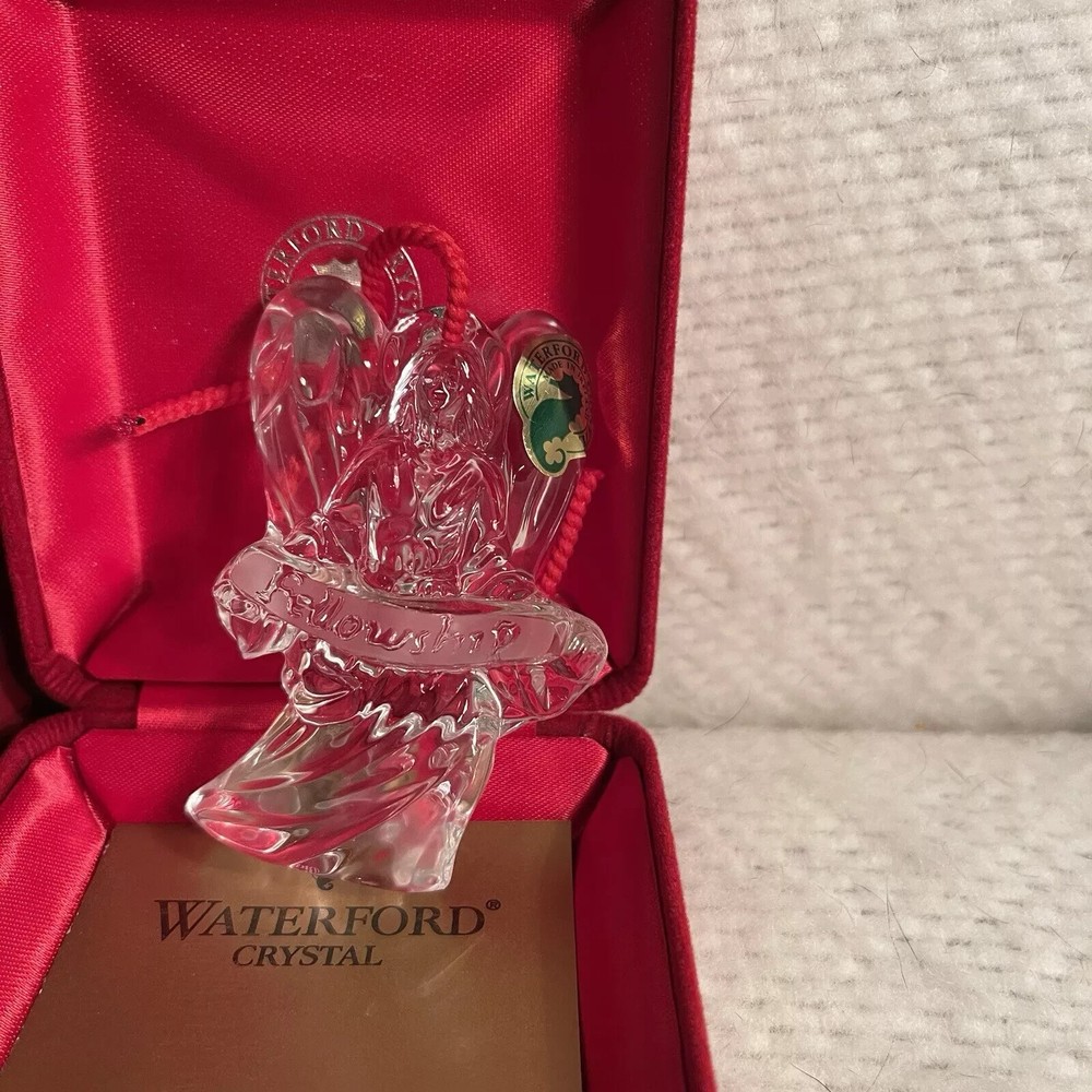 Brand new in velvet spring close box with original slipcover. Comes with hangar, care card and history. Elevate your holiday decor with the exquisite Waterford Crystals The Millennium Angels 3rd Edition Fellowship Angel Ornament. Crafted with impeccable attention to detail, this stunning piece embodies the spirit of the season with its ethereal design and clear crystalline structure. The ornament stands at 3 inches in height and spans 2 inches in width, making it a delicate yet prominent addition to your festive collection. Originating from Ireland, this angelic treasure reflects a legacy of quality and artistry synonymous with the Waterford brand. Whether to celebrate Christmas or to cherish as part of a year-round display, this ornament's harmony of grace and craftsmanship is sure to bring a serene touch to any space.