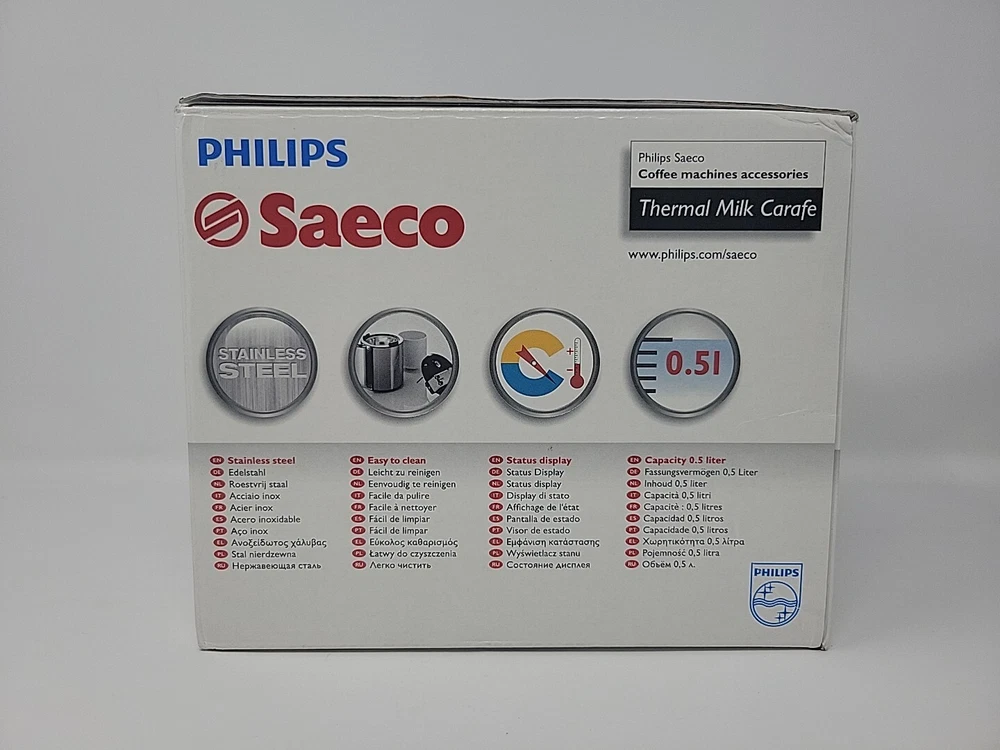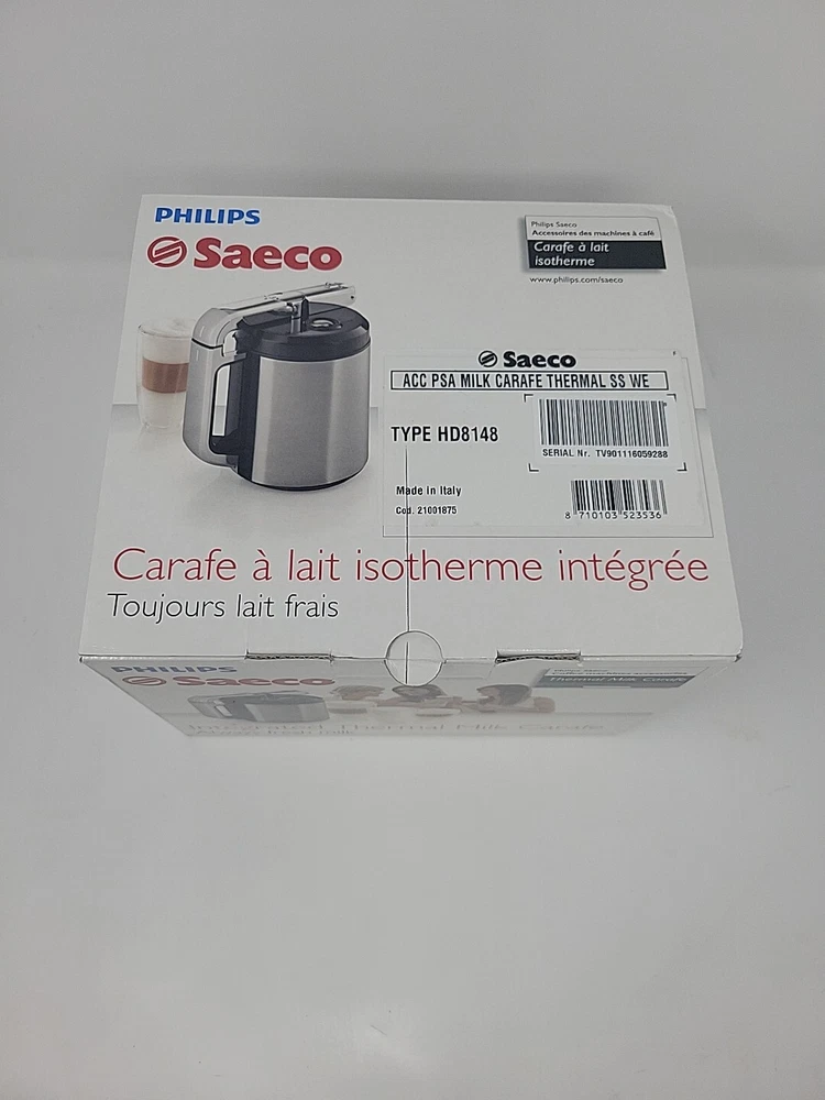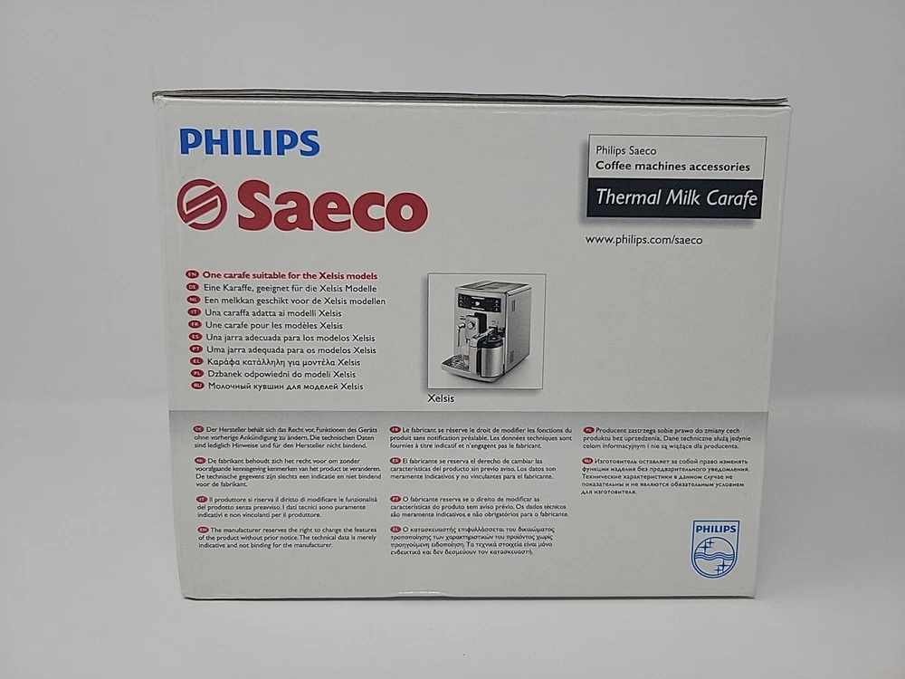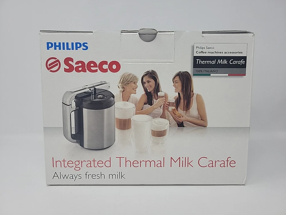 NIB philips saeco Thermal Milk Carafe With Thermometer for Xelsis Coffee Machine. Made in Italy - A very hard to find piece for your Saeco Xelsis coffee machine. Better than the transparent square plastic one. Item is new in open box.