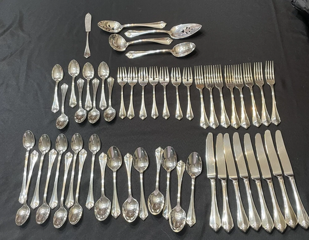 NICE!! 53 Pc 1881 ROGERS ONEIDA KING JAMES SILVERPLATE FLATWARE Service For 8+