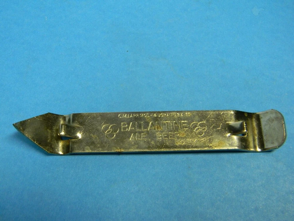 HERE IS A NICE VINTAGE 1953 BALLANTINE BOTTLE AND FLAT TOP CAN OPENER FROM THE FAMOUS BREWERY IN NEWARK NEW JERSEY. EXCELLENT CONDITION! COOL 3 RINGS LOGO. GREAT TO PUT ON YOUR BAR! NICE FIND IN THIS CONDITION! LISTING SOME OTHER OPENERS TOO! WILL COMBINE SHIPPING JUST ASK BEFORE YOU PAY! PAYMENT MUST BE RECIEVED 3 DAYS AFTER AUCTION CLOSE. ANY QUESTIONS PLEASE ASK. INSURANCE ALWAYS RECOMENDED AND EXTRA IF YOU CHOOSE TO PURCHASE IT AND I WON'T BE HELD RESPONSIBLE FOR DAMAGES FROM THE SHIPPER IF YOU DON'T CHOOSE TO PURCHASE IT. IF YOU'D LIKE INSURANCE LET ME KNOW SO I CAN INVOICE PROPER AMOUNT. THANKS FOR LOOKING! FEEDBACK WILL BE LEFT AFTER YOU HAVE LEFT FEEDBACK AND ARE SATISFIED.