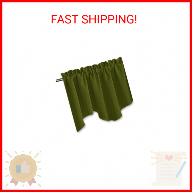 NICETOWN Camper RV Curtain Valance for Window Decor - 52 inches by 18 inches Solid Scalloped Valance for Bedroom/Kitchen/Living Room/Bathroom/Bay Window/Christmas (Olive Green, 1 Panel) - READY MADE: 1 panel per package. Each panel measures 52" wide x 18" long. The design of pocket (2 inches diameter) makes the curtains easy to install and slide and creates casual elegance for your home. - STYLISH DESIGN: The Blackout Scalloped Valances bring soft sophistication to your home. And the solid color will perfectly complement any existing home decor. Simple pleats on the rod pocket add an elegant look. - AMAZING MATERIAL: Super heavy and soft Blackout Drape Panels are very upmarket. No coating, no formaldehyde, Fade-resistant, skin-friendly, creates a harmonious environment. The same materials are on both sides. - WIDE COMPATIBILITY: You will be easy to find a similar style blackout curtains with the same color in the NICETOWN store. These valances are your perfect choice for the bathroom, kitchen, cafe store or any small window. - EASY CARE: Machine wash in cold water below the temperature 86℉. Low ironing to remove wrinkles. Products have 30 days money-back Guarantee! Come and contact us if you have any questions or requests! The Fine Print Payments We accept the following payment methods Visa/Mastercard PayPal Apple Pay Google Pay Please pay as soon as possible after winning an auction, this will allow for quicker shipping times! Returns We accept returns . You can return unopened items in the original packaging within 30 days of your purchase with receipt or proof of purchase . If 30 days or more have passed since your purchase , we cannot offer you a refund or an exchange . Upon receipt of the returned item , we will fully examine it and notify you via email , within a reasonable period of time , whether you are entitled to a return . If you are entitled to a return , we will refund your purchase price, and a credit will automatically be applied to your original method of payment . Only regular priced items may be refunded . Sale items are non -refundable . Buyer is responsible for return shipping costs + a 20% restocking fee. Shipping Shipment processing time All orders are processed within 2-3 business days. Orders are not shipped or delivered on weekends or holidays. If we are experiencing a high volume of orders, shipments may be delayed by a few days. Please allow additional days in transit for delivery. If there will be a significant delay in shipment of your order, we will contact you via email or telephone. Shipping rates & delivery estimates Shipping charges for your order will be calculated and displayed at checkout.