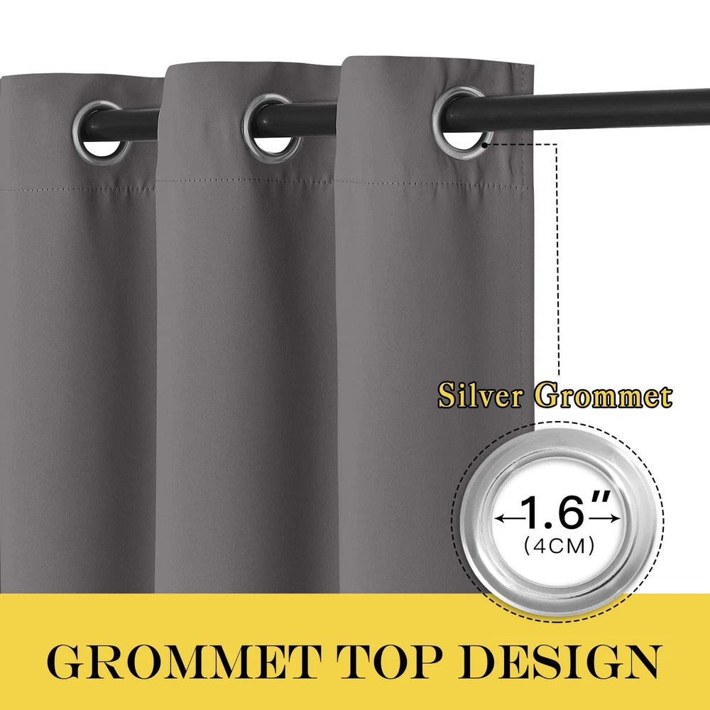 AMAZING FABRIC: The blackout curtain's fabric is super soft and heavy innovative triple-weave polyester fabric. Same material back as of front makes it appear more elegant. The 14 sliver grommets top (inner diameter is 1.6-inch) adds a modern touch and easy hanging. MULTIPLE FUNCTIONAL: These extra wide curtains are wide enough to covering sliding door perfectly. Besides, the curtain panel helps your patio door to block out most of light and UV ray, high performance on thermal insulated, noise reducing and privacy protecting. ENERGY SMART: Triple weave blackout fabric balances room temperature by insulating against summer heat and winter chill, reducing air conditioning costs. Protect your furniture, floors and artwork from the ravages of the sun, the Patio Door Drapes will pay for themselves off over time. WISE COMPATIBLE: Thread trimmed and wrinkle free, all sets for you to put them up right away. Suitable perfectly for: sliding door, patio door and any large window. These wide curtains can be hung separately, or combine with NICETOWN sheer curtains. EASY CARE: Good quality finishing will withstand years of use. Machine washable and Wash the water temperature below 86F. Mild detergent no bleaching. Low temperature ironing. Don’t use sharp things scratching curtains.