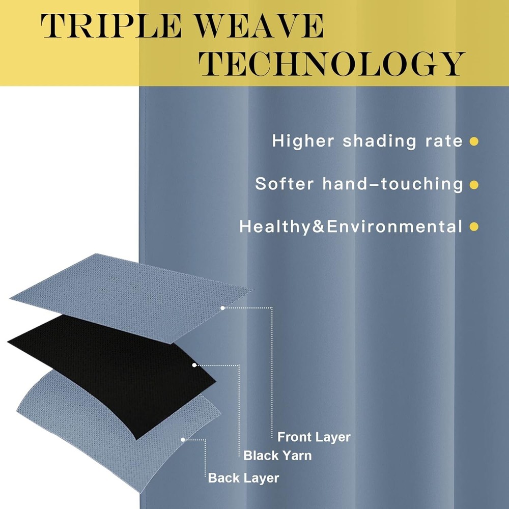 About this item Polyester Imported ELEGANT DESIGN: 1-panel BLACKOUT CURTAIN per package. Each Curtain Panel measures 46" wide x 63" long. The NICETOWN drapery is constructed with gorgeous matte silver grommets, fitting the curtain rod of your choice up to 1.6 inches in diameter, making the curtains easy to install and slide. AMAZING MATERIAL: This unique, soft, and heavy-duty blackout fabric is woven with three-layer construction. The middle layer of black yarns creates a curtain panel that is excellent for blocking out 85%-99% of light (Dark color works better on blocking light) while providing privacy. MULTIFUNCTION: These Blackout Window Curtain Blind will prevent harmful light from reaching your floors and furniture, efficiently prevents cold or heat transfer from outside, will increase the energy efficiency of your home, and allow you to create darkness at any time of day. GOOD CHOICE: Perfect drapery option for anyone seeking to block daylight, take a nap, or keep sun glare off your TV. Besides, you can choose blackout valance and sheer curtains in the NICETOWN store to match. Such curtain sets provide a more permanent harmonious window dressing. EASY CARE: Good-quality finishing will withstand years of use. Machine washable and Wash the water temperature below 86F. Mild detergent no bleaching. Low-temperature ironing. Don’t use sharp things scratching curtains. -----