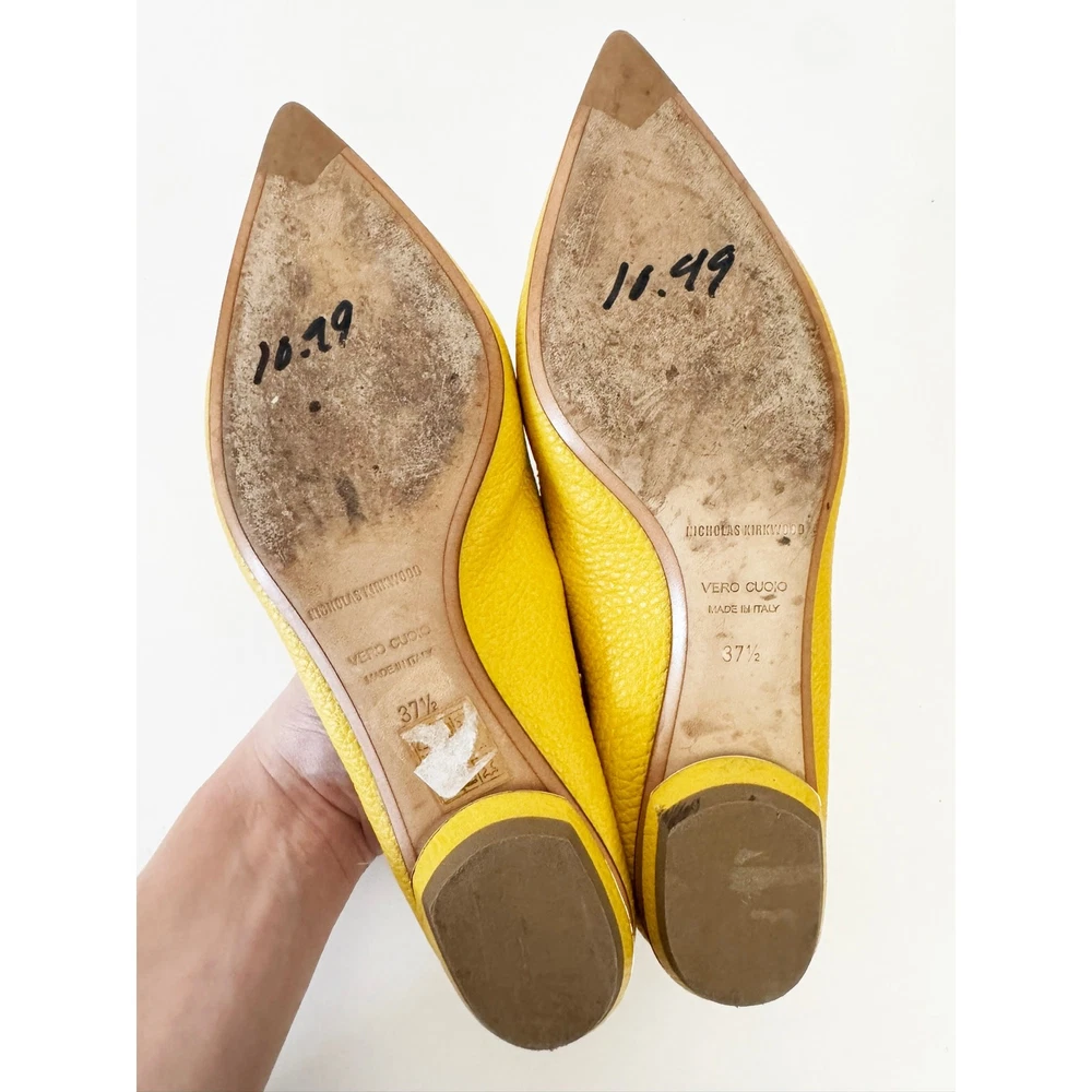 Designer: Nicholas Kirkwood Size: 37.5 / US 7/6.5 – they run a tad small Description: Pointed toe. Leather upper. Padded insole. Made in Italy. Condition: Pre-owned in good condition - wear on soles Measurements: 8” insole, 0.5” heel Composition: leather