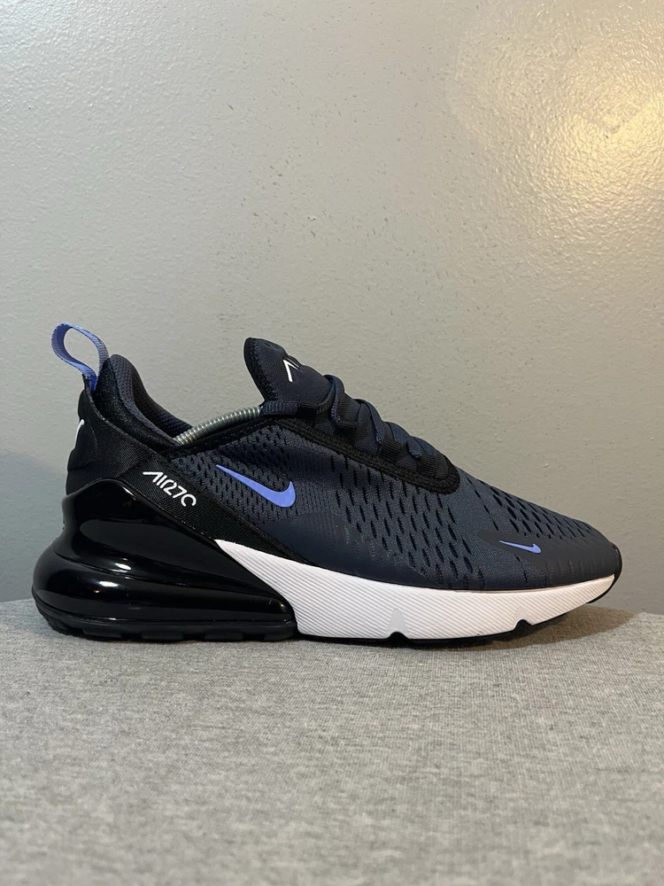 NIKE AIR MAX 270 THUNDER BLUE/BLACK/WHITE/ROYAL PULSE Shoe SIZE Youth 7 & Women's 8.5 943345 408 New with no box. We always carefully package and ship right away. Reach out with any questions. Youth 7 & Women's 8.5 The pair in our photos is the exact pair you are purchasing. Make sure to follow us. We post shoes often and offer bundle pricing.