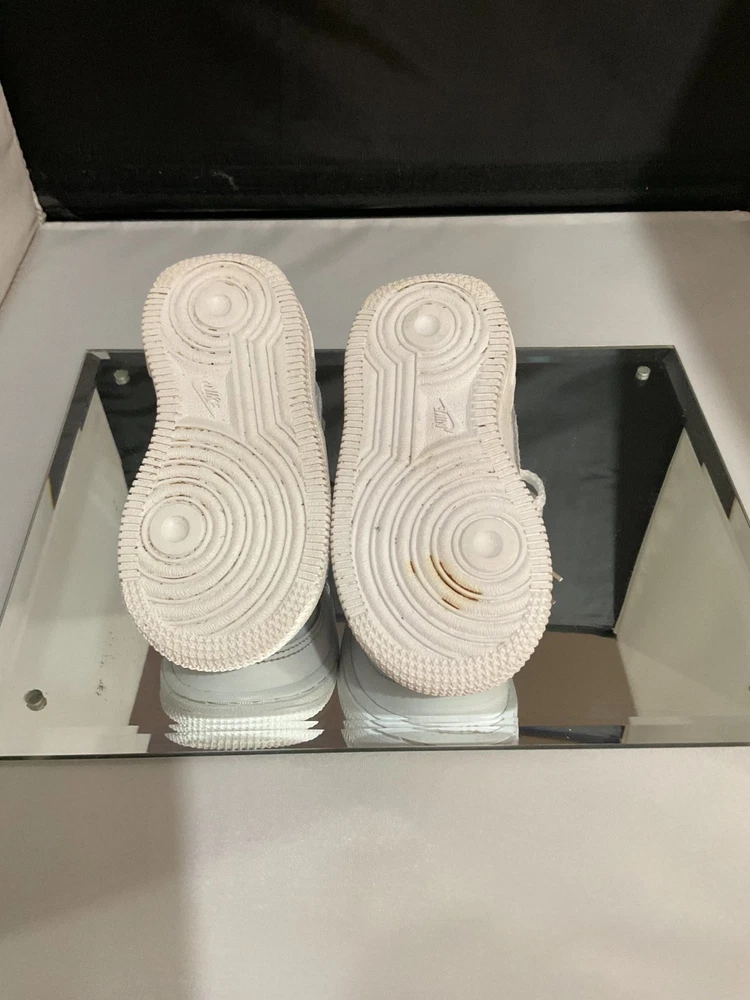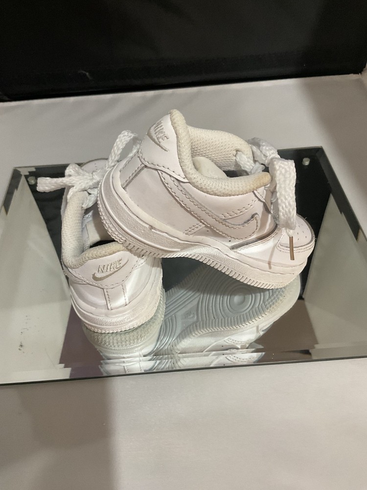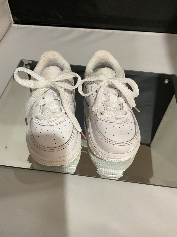 The NIKE Air Force 1 white sneakers for boys and girls in toddler size 5c are a stylish and versatile addition to any young child's wardrobe. Made with high-quality leather, these athletic shoes feature the iconic Nike Air Force 1 design with a classic white color that matches any outfit. It is easy to put on and comfortable to wear, perfect for active toddlers who love to explore and play. The unisex design makes them suitable for both boys and girls, and the durable construction ensures they will last for a long time.