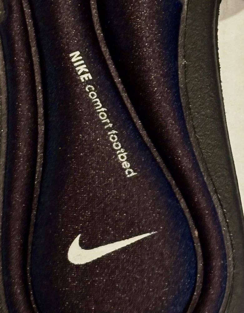 Elevate your casual look with these Nike Comfort Slide Footbed Sandals. These stylish flip flops have a super cushioned sole, come in size 11 and are perfect for any casual occasion. The solid black color and hook & loop closure make them easy to slip on and off. The cushioned and slip-resistant features along with the adjustable top strap ensure maximum comfort. The synthetic upper material adds to the durability. These sandals are a part of the Nike Comfort Slide product line, making them the perfect choice for those who want both style and comfort.