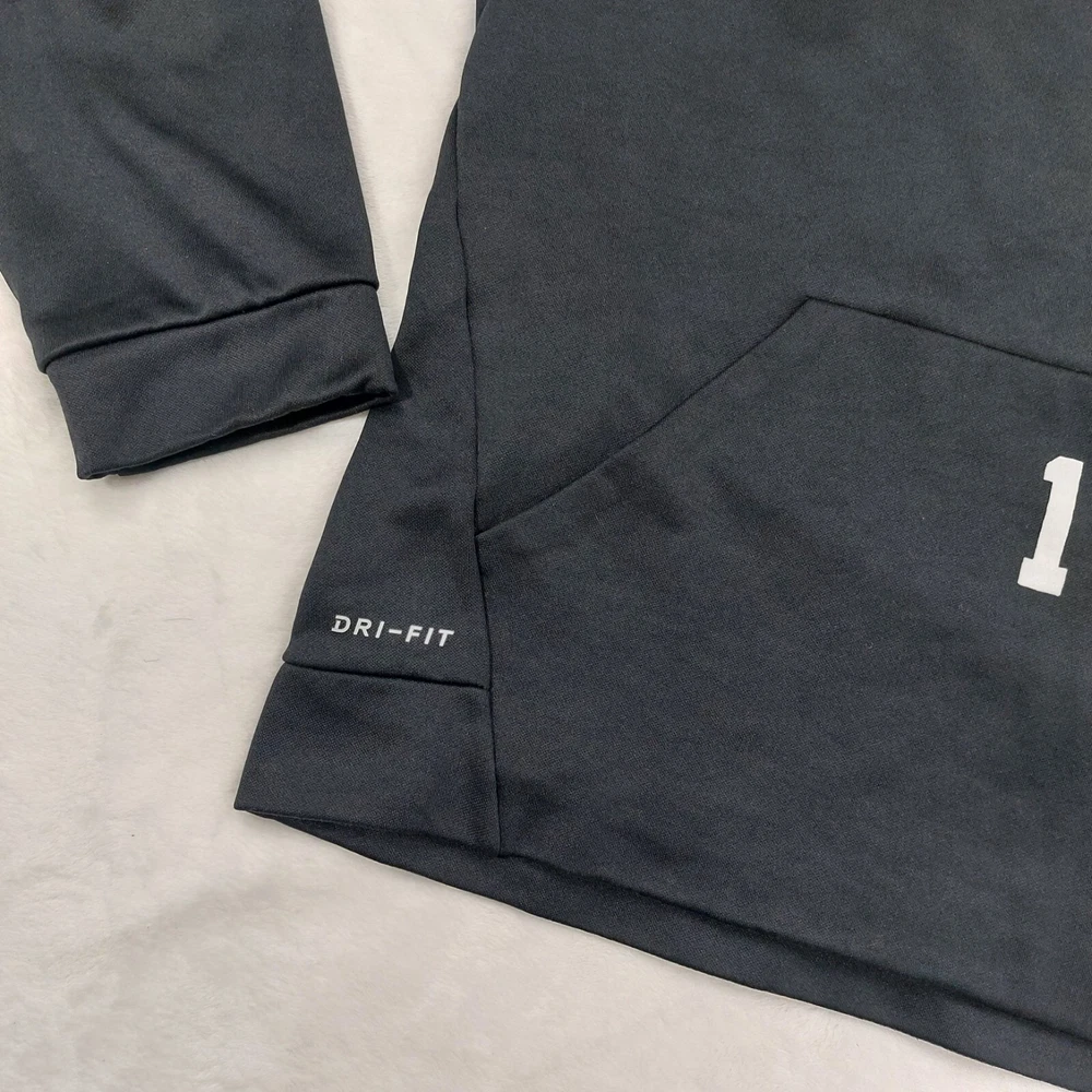Brand: Nike Closure: Drawstring Color: Black Size: M Season: Winter, Spring, Fall Style: Pullover Theme: Sports, Classic, casual, activewear, athletic, football, athleisure, school, school spirit, vikings, alabama, jasper Size Type: Regular Features: Hooded, pocket Department: Men Sleeve Length: Long Sleeve Country/Region of Manufacture: Jordan Material: Polyester Vintage: No Pattern: Solid Type: Hoodie