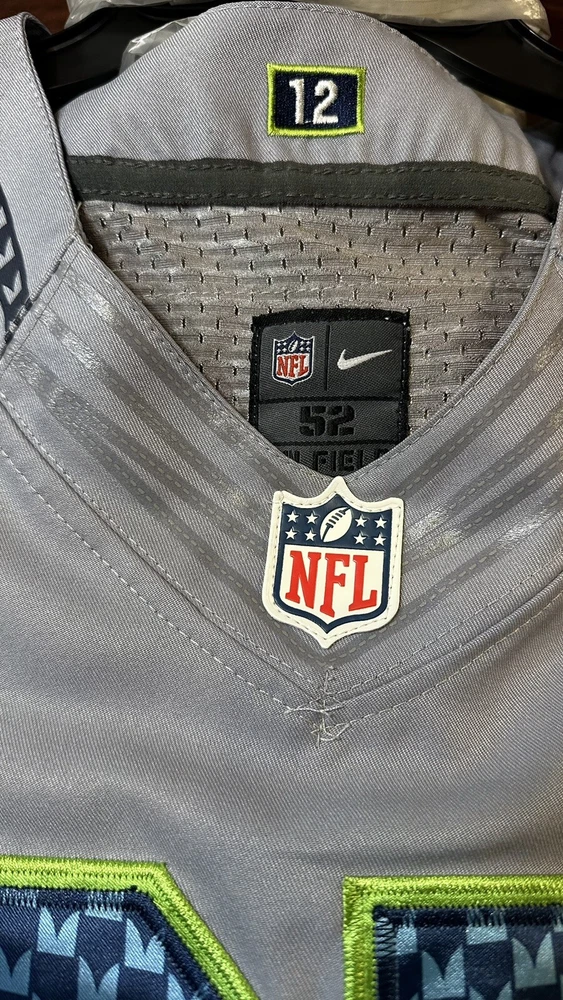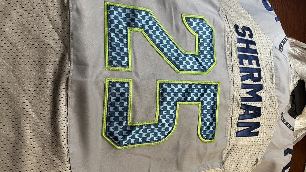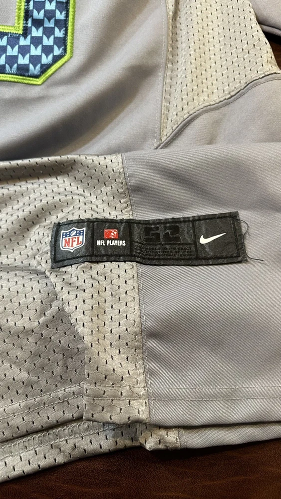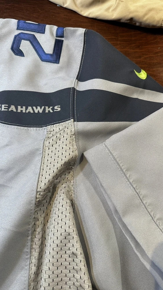Show your support for the Seattle Seahawks with this Nike Elite jersey featuring Richard Sherman's number 25. Made from high quality materials, this authentically licensed NFL product is perfect for any football fan. The jersey is a size 52 and comes in a stylish wolf grey color. Represent your favorite team during regular season games or simply add it to your collection of fan apparel and souvenirs. This jersey is designed for men and made in Honduras. Get your hands on this official Nike product and show your pride for the Seattle Seahawks today!