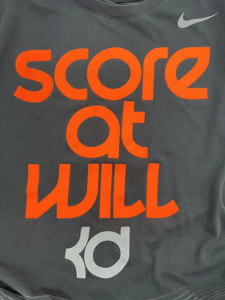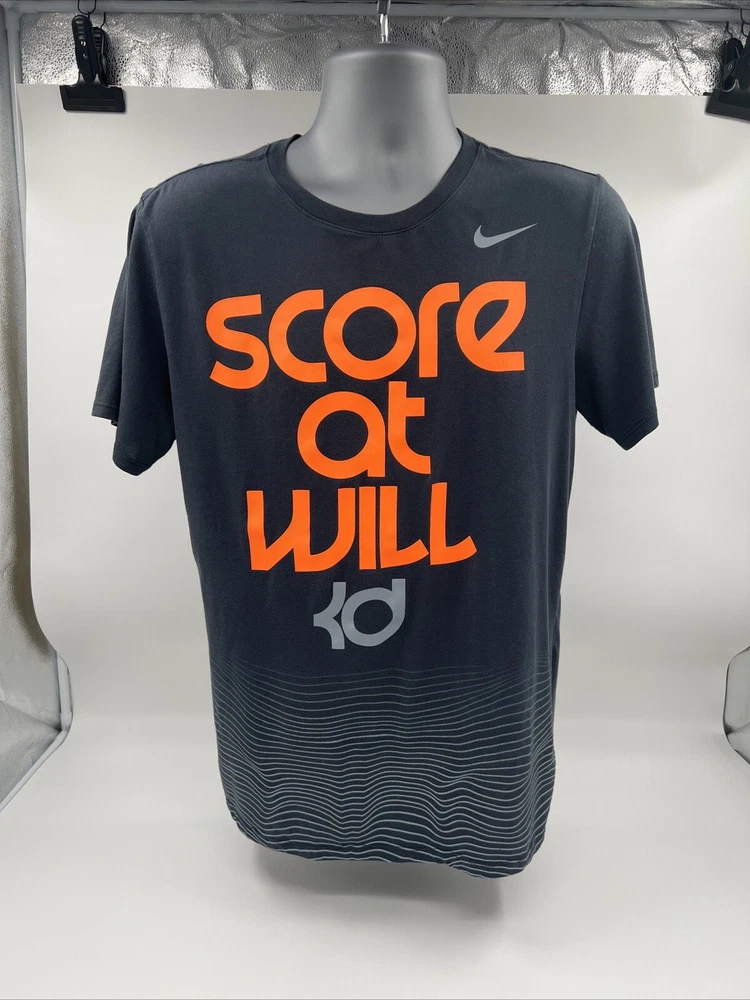 NIKE KD SCORE AT WILL T-SHIRT SIZE Large Mens M T-SHIRT Kevin Durant Gray Orange