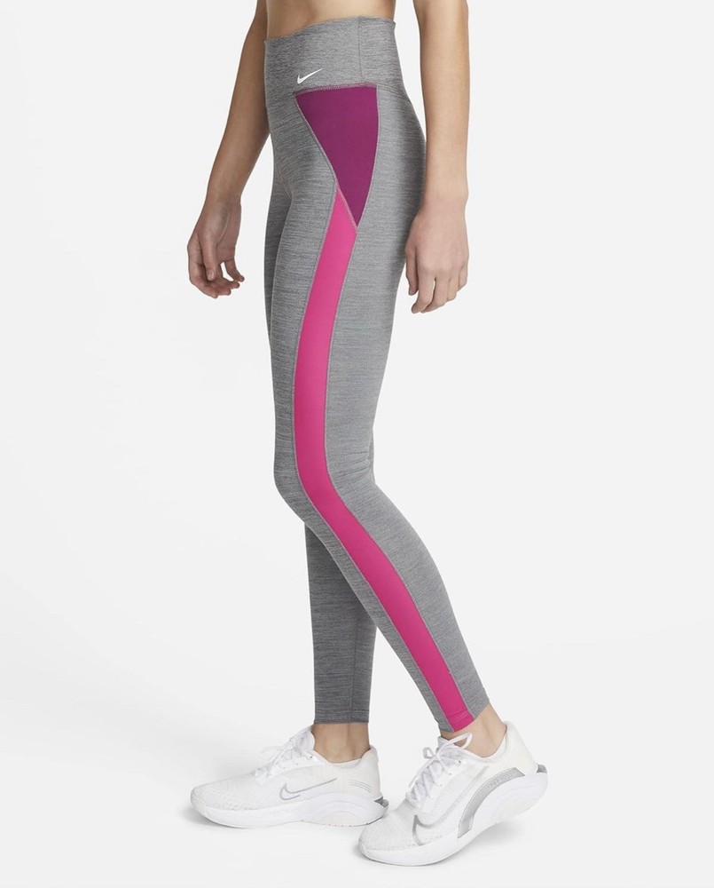 NIKE One Women's Mid-Rise Training Color-Block Leggings Gray/Purple, Sz M