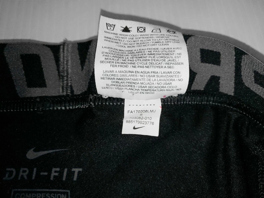 NIKE PRO COOL DRI-FIT COMPRESSION 3/4 RUNNING SPORT LEGGINGS. BLACK. SMALL. 🌈 GAY INTEREST. VERY RARE ITEM . COLLECTION 2015. Strive for sports sexiness excellence in the men's Nike Pro Cool Compression 3/4 leggings? The Nike Pro Cool Compression Men's 3/4 leggings are made with Dri-FIT stretch fabric and mesh panels (in the area of the pouch, crotch and along the inseam legs) for sweat - wicking comfort and enhanced airflow. Category : Men's activewear Condition : Pre worn (used). Like new! Worn 1-2 times. The item is washed and clean!!! Color : Black Size : Small - waistband in horizontal dimension (lay flat) 13". Look at the photo. Inseam : 18,5" - unstretched Side seam : 24,2" - unstretched Whether it's game day or training day, the Nike Pro leggings help keep you supported and comfortable, stretchy fit and sweat-wicking technology to help you move freely through your stride. Layer them or wear them solo. Stay dry and cool with ventilated comfort. Dri-FIT Technology helps keep you comfortable and dry by wicking sweat away from your skin to the fabric's surface, where it quickly evaporates. A compression fit provides support and freedom to move during any training regimen. Mesh panels keep the air flowing right where you need it, helping you stay cool even when your workout heats up. Ergonomic seams and stretch fabric allow natural range of motion. Flat seams move smoothly against your skin. Details : Compression slim fit Pouch : Double Mesh Cropped leg Wide stretch waistband with graphic print detail NIKE PRO Nike logo at left leg Fabric body : 90% Polyester, 10% Spandex. Fabric mesh/gusset lining: 92% Polyester, 8% Spandex Care : Machine wash cold, Wash with like colors. Do not bleach, Tumble dry low, Cool iron, Do not dry clean Style : # 703082-010 Made in Jordan Please ask any questions before deciding to purchase!!! I hope to provide you with a little slice of passion and fantasy in your life with my hot πŸ”₯ wardrobe πŸ©²πŸ©³πŸ‘πŸ’πŸ†πŸ’¦πŸ‘…πŸ€€πŸ‘πŸ³οΈπŸŒˆ Sold As Is!!! No return!!! No exchange!!! See my other items !!! Enjoy!!!