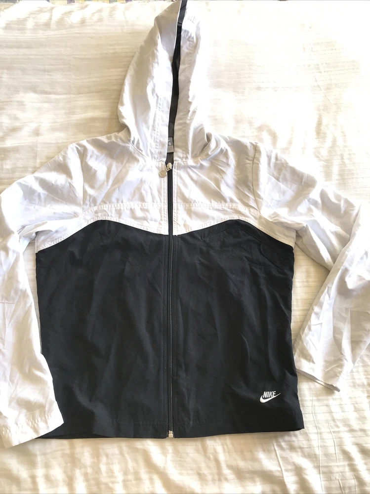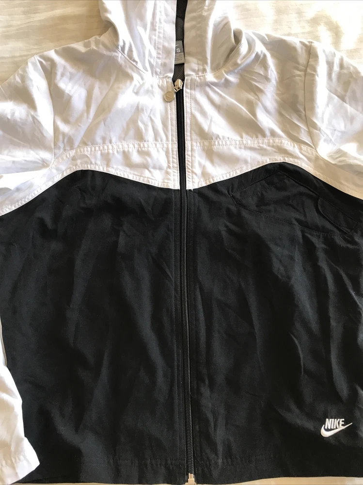 HomeNIKE black white lined full zip HOODIE pocket Small 4/6 (38” chest) athletic