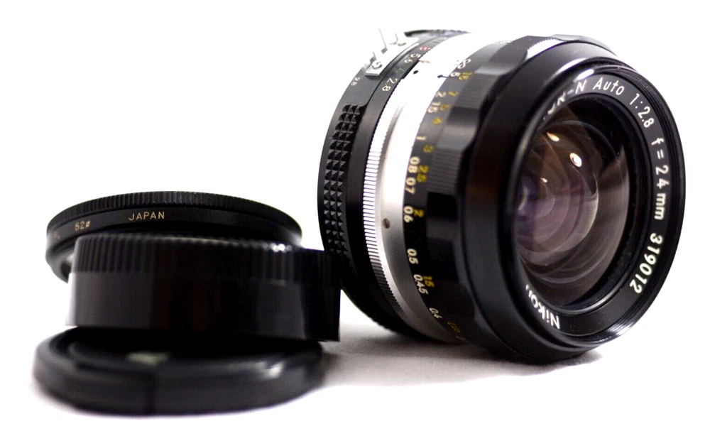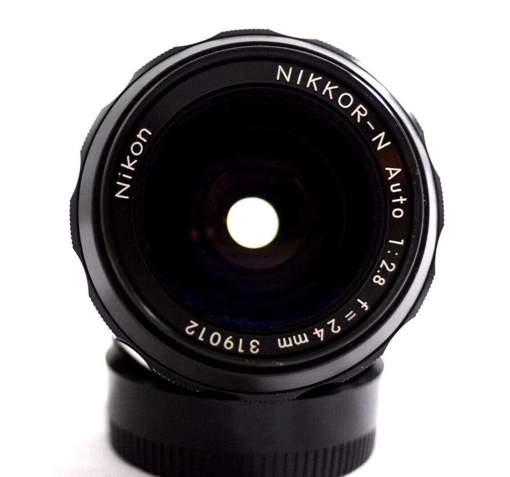 NIKON AI TELEPHOTO LENS HERE IS A GREAT LOOKING (EXCELLENT) NIKON AI 24MM F2.8 NIKKOR-N MANUAL FOCUS WIDE ANGLE CAMERA LENS FOR NIKON SLR DSLR CAMERAS. FACTORY AI'D LENS. GLASS IS CLEAN AND CLEAR WITH NO SCRATCHES, HAZE OR FUNGUS. NO OIL ON THE APERTURE BLADES. ALL LENS FUNCTIONS WORK SMOOTHLY. LENS BARREL SHOWS VERY LIGHT WEAR.. LENS COMES WITH NIKON END CAPS AND POLARIZING FILTER.