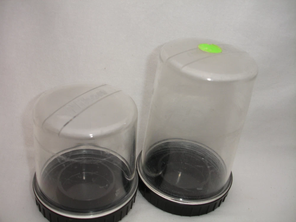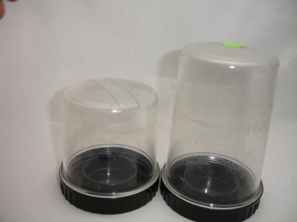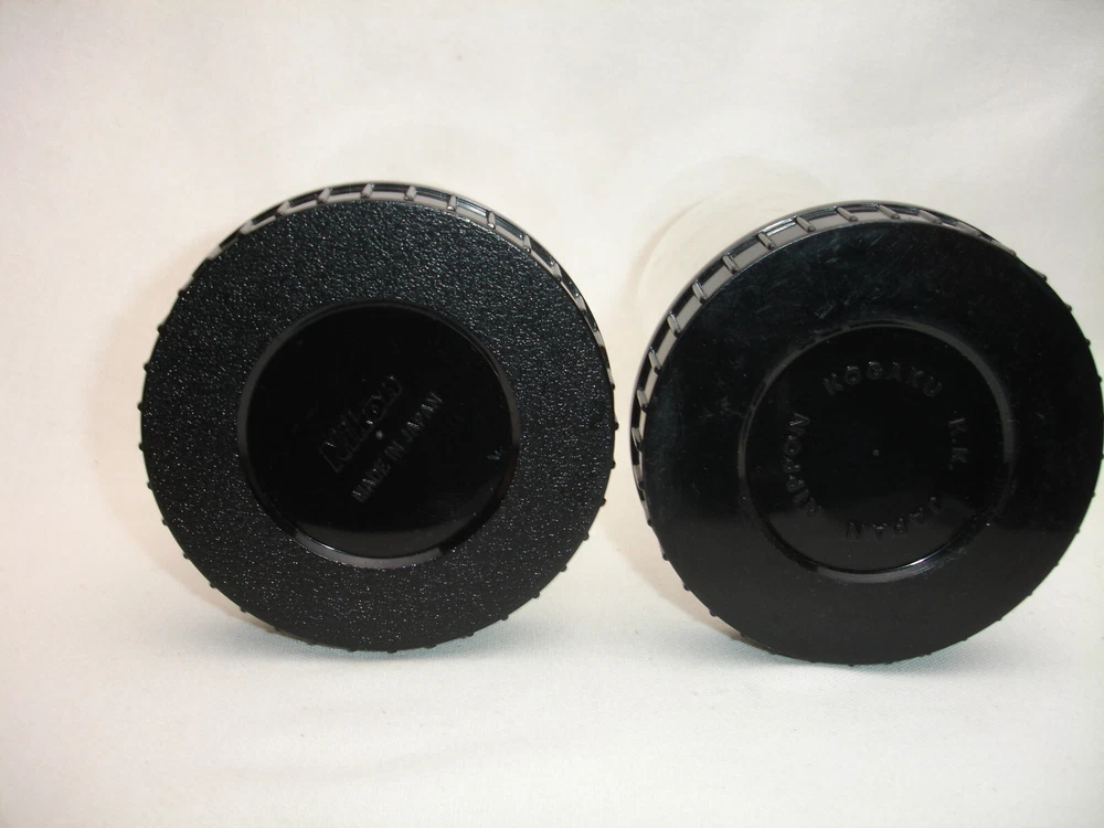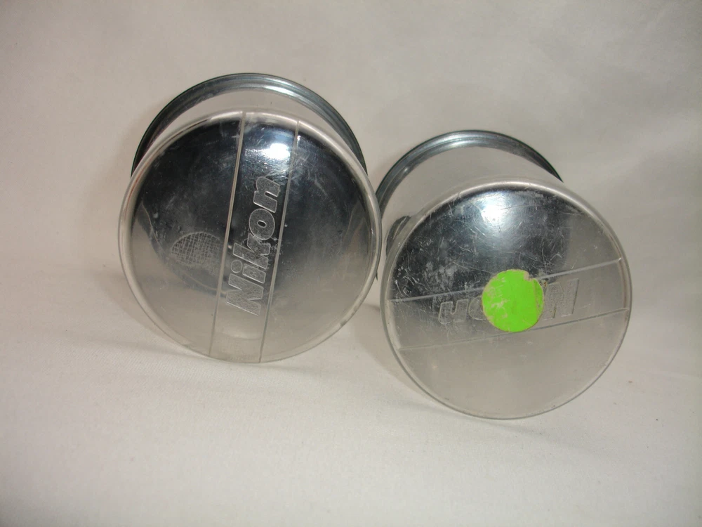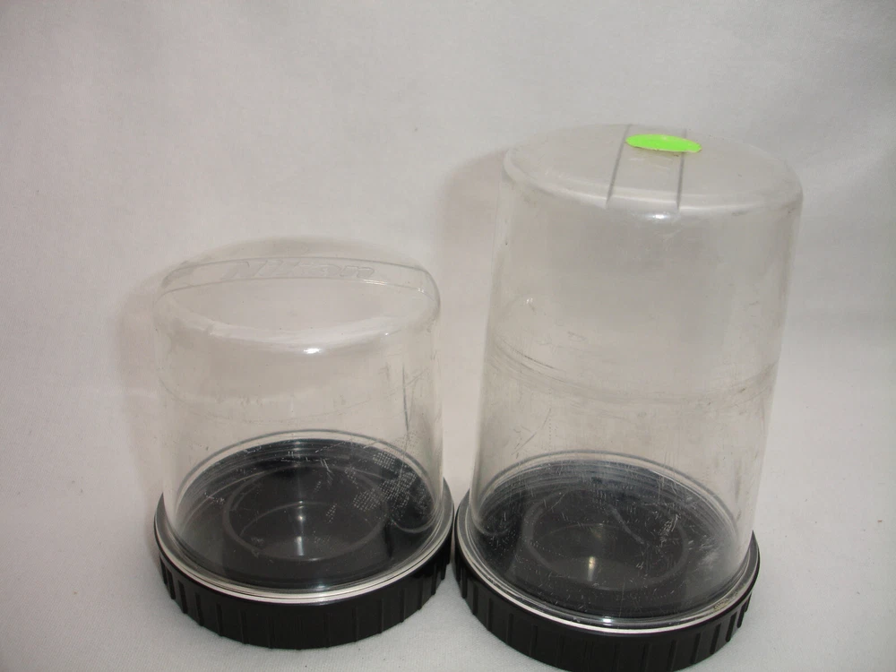 DESCRIPTION NIKON plastic LENS CASES Lot of two - one for small lens, one for mediums size lens Pictures represents actual item. CONDITION used, works good Heavy cosmetic wear Please look closer to all pictures, they are part of description. SHIPPING Packages will be shipped within 1 business days of payments clearing.