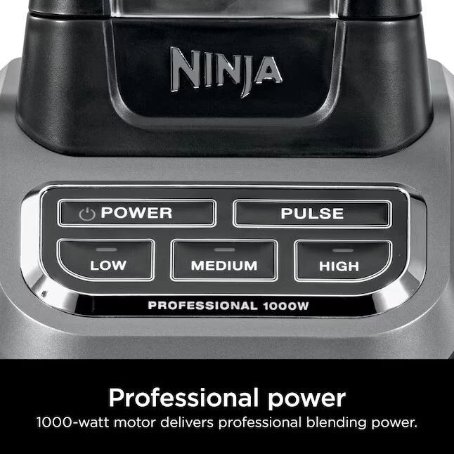 Description The Ninja Professional Blender gives you the powerful performance you need to crush, blend, puree, and process your favorite foods. The professional-grade power of the Ninja blades and high-torque motor slices through just about anything to make delicious, nutrient-rich drinks and smoothies. And when you're done, simply load all the pieces into your dishwasher for a hassle-free clean that will have you blending again in no time at all. Bring home this powerful food processor from Ninja and enjoy creamy frozen drinks with the entire family. Highlights -Keep crushing it in the kitchen with this Ninja Blender -Ninja Extractor Blades easily slice through ice, seeds, and nuts -The blender's powerful 1000-watt motor gives a powerful performance -Safety feature prevents blades from spinning without lid attached