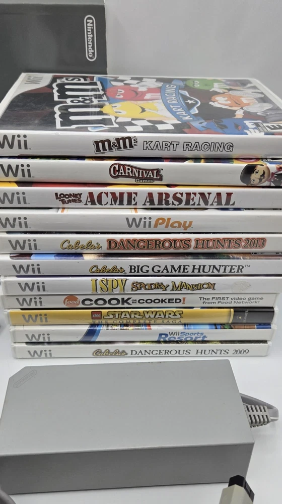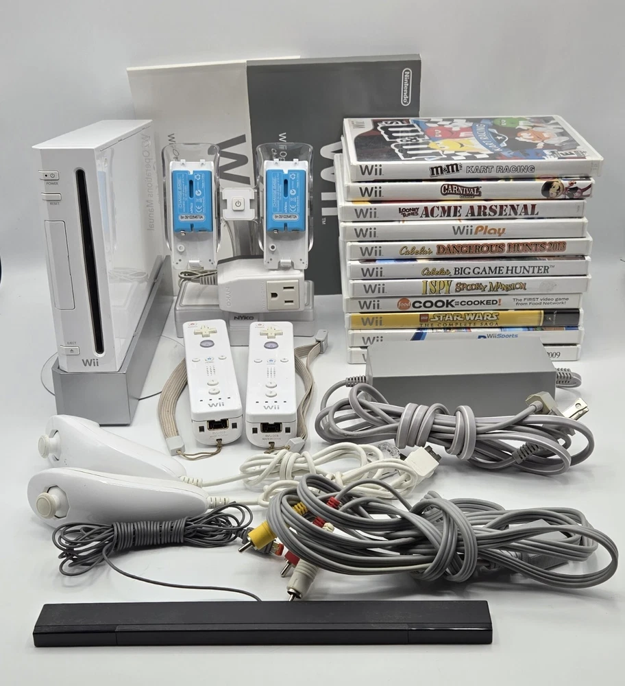 NINTENDO Wii CONSOLE BUNDLE with 2 Controllers, Charger, 11 Games, Wii Sports.