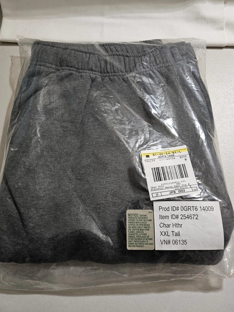 Men's LL Bean XL TALL Charcoal Heather sweatpants with zipper and button closure and zipper at ankles. New in package. I removed from package to measure and take pictures. Waist: 42" Inseam: 34" Returns accepted within 30 days in same condition as purchased. Buyer pays return shipping. Shipping USPS ground.
