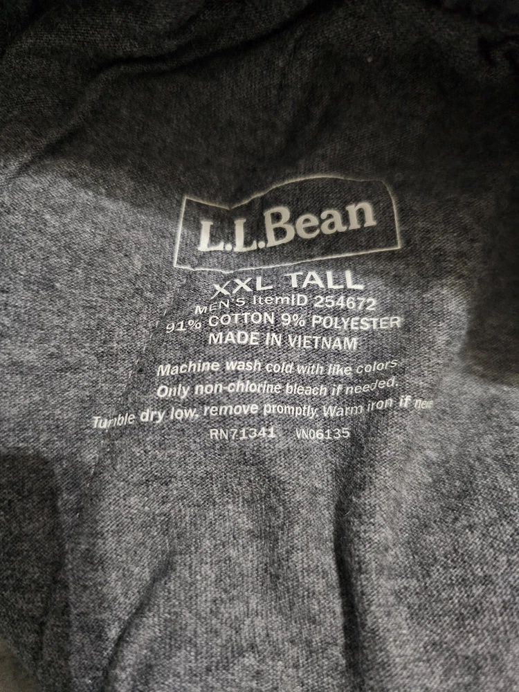 gtin13: Does not apply Type: Pants Closure: Button, Drawstring, Zip Leg Style: Straight Department: Men Garment Care: Machine Washable UPC: Does not apply Waist Size: 42" Inseam: 34" Fit: Regular Accents: Zipper Country/Region of Manufacture: Vietnam Color: Gray Fabric Type: Fleece Brand: L.L. Bean Model: LL Bean Material: Cotton Blend Season: Fall, Spring, Winter Size Type: Big & Tall Size: 2XLT Style: Sweatpants Front Type: Flat Front Occasion: Casual, Travel, Workwear