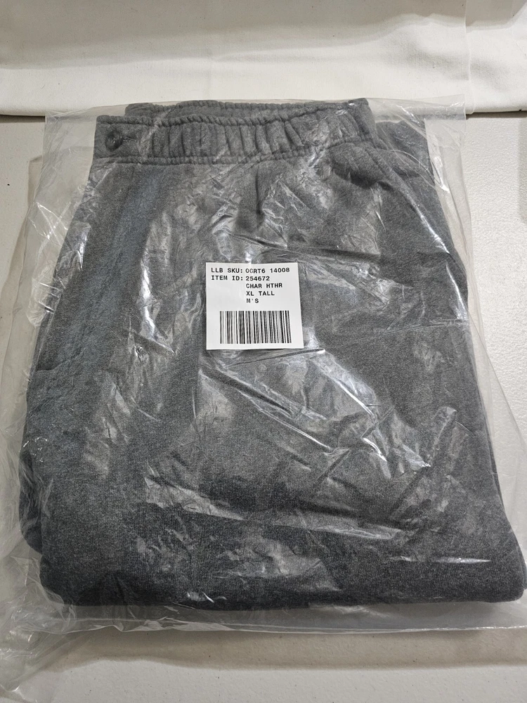 Men's LL Bean XL TALL Charcoal Heather sweatpants with zipper and button closure and zipper at ankles. New in package. I removed from package to measure and take pictures. Waist: 35" Inseam: 33" Returns accepted within 30 days in same condition as purchased. Buyer pays return shipping. Shipping USPS ground.