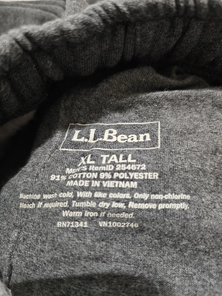 Inseam: 33" Size Type: Big & Tall Size: XLT Fabric Type: Fleece Accents: Zipper Material: Cotton Blend Season: Fall, Spring, Winter Occasion: Casual, Travel, Workwear Waist Size: 35" Color: Gray gtin13: Does not apply Department: Men Brand: L.L. Bean Country/Region of Manufacture: Vietnam UPC: Does not apply Type: Pants Leg Style: Straight Model: LL Bean Garment Care: Machine Washable Fit: Regular Front Type: Flat Front Style: Sweatpants Closure: Button, Drawstring, Zip
