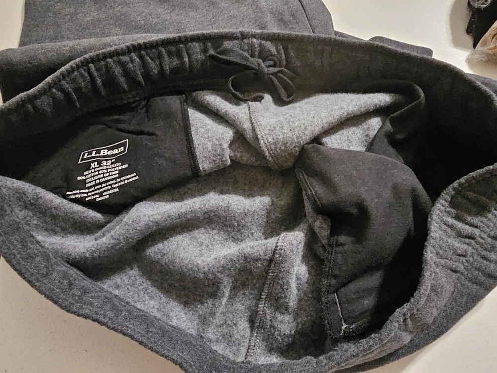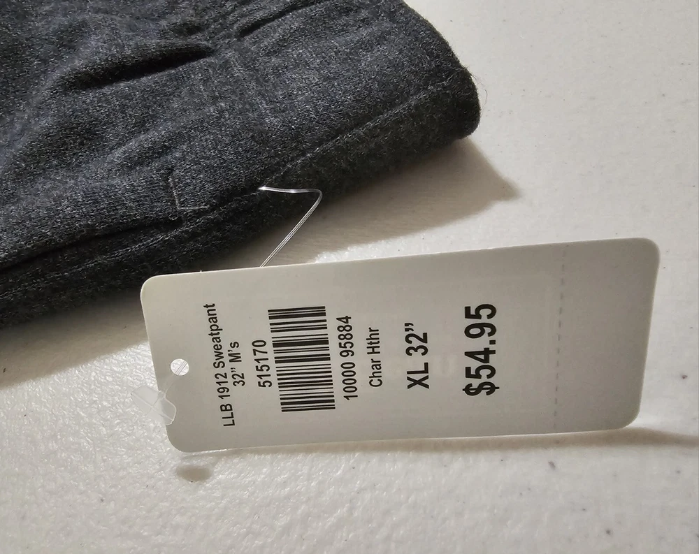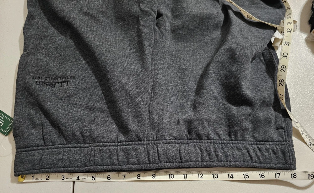 If you especially want something comfortable to wear, these are it. They are so soft! Men's LL Bean XL Charcoal Heather sweatpants with side pockets and elastic with drawstring waist. The legs are just straight at the bottom, with no zipper or elastic. 60% Cotton 40% polyester New in package. I removed it from the package to measure and take pictures. Measurements: Waist : 36" Inseam: 32" Measured lying flat. Waist is elastic with drawstring, so it can accommodate a little range in sizing. Returns accepted within 30 days in same condition as purchased. Buyer pays return shipping. Shipping: I'm packing this tightly in a Priority Mail to save on shipping.