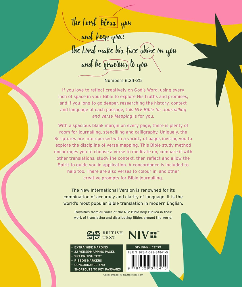 Fast Shipping Great Customer Support Satisfaction Guaranteed DESCRIPTION Shipping Shipping Shipping All domestic packages are shipped for Free (Unless other shipping method was selected during the checkout) Most items ship and arrive much sooner than the estimate delivery date. Usually within 2-3 days from payment. However, we have longer estimates to compensate for the occasional delay or supply chain breakdown. We do not accept P.O. BOXES - PLEASE PROVIDE A PHYSICAL ADDRESS Return Return Return In the event that you would like to return your purchase, we allow returns that are processed within the defined return date (the return date is to be found in the return policy/shipping and handling section) Please contact us for a return authorization and the return shipping address. Payment Payment Payment PayPal is our preferred method of payments it's the quickest, easiest and most secure way to pay for your goods or services online. PayPal offers buyer and seller protection should there be a problem. If you do not have a PayPal account, to get started and buy your first item with us is very easy. Simply click on the 'Buy It Now' button and follow the eBay checkout steps. Select PayPal as the payment method you then will be given the chance to enter your card details in to PayPal's secure checkout in order to pay for your order. Once the payment has been made, you will then be given the opportunity to make your own PayPal account to make paying for your items in the future very easy. Should there be a problem with payment please do let us know. Feedback Feedback Feedback Customer satisfaction is very important to us. If you have any problem with your order,please contact us and we will do our best to make you satisfied, please do not leave a negative feedback before we resolve your problem. We guarantee that your issue will be solved quickly. As long as you are happy with your purchase of , please leave us a positive feedback. Your feedback is very important to us it affects our search placement on eBay. We will leave a positive feedback for you in return automatically once we receive your feedback. Contact Us Contact Us Contact Us If you have any queries, please contact us via ebay. We usually respond within 24 hours on weekdays. Thank you for visiting our ebay store! The NIV Bible for Journalling and Verse-Mapping is a beautifully presented Bible for you to treasure. The New International Version of the Scriptures is printed in clear, easy-to-read 9PT British Text on thicker than usual Bible paper, with a five centimetre blank margin on every page, giving you lots of extra room for notes, reflections, illustrations or Bible studies. A 32-page concordance can be found at the back. The Bible text is interspersed with 32 pages introducing the art of verse-mapping. This Bible study method encourages you to prayerfully choose a verse, compare it with other translations, study the context, including the history and characters mentioned, and then reflect and allow the Spirit to guide you in application. There are also verses to colour in, with lots of space around them for you to add your own illustrations, and many other pages with creative prompts for Bible journalling.This special edition of the NIV has eye-catching teal sprayed edges, along with a pink elastic strap closure and two pink ribbon markers and the cover design is inspired by the powerful prayer of blessing from Numbers 6:24-26:'The Lord bless you and keep you;the Lord make his face shine on you and be gracious to you;the Lord turn his face towards you and give you peace.'It would make a fantastic birthday gift for Christian friends or for Mother's Day. NIV Journaling Bible with Verse Mapping - Rainbow Edition Click here to see description Fast Shipping Great Customer Support Satisfaction Guaranteed DESCRIPTION Shipping All domestic packages are shipped for Free (Unless other shipping method was selected during the checkout) We ship within two business days of payment, usually sooner Standard FREE shipping takes between 3-5 business days Expedited shipping takes between 2-3 business days Overnight shipping takes between 1-2 business days We do not accept P.O. BOXES - PLEASE PROVIDE A PHYSICAL ADDRESS We Ship Globally using ebay's GSP, the item is sent to a logistic center in KY and shipped from there to the rest of the world. International customers are responsible for all duties and taxes Contact your local authority for questions related to the amount of duties or taxes you will be responsible for Return In the event that you would like to return your purchase, we allow returns that are processed within the defined return date (the return date is to be found in the return policy/shipping and handling section) Please contact us for a return authorization and the return shipping address. Please contact us for a Return Merchandise Authorization (RMA) number. We advise you to use a reputable carrier service when returning your goods. Please pack all returns appropriately. We ship globally Via eBay's global shipping program (GSP). Thus we don't cover returns for items shipped globally. Buyers returning such items will be refunded ONLY for the item's cost and not for the shipping. please check the Voltage information and make sure it matches the one in your country. In case it's not stated in the description, do ask us. Payment PayPal is our preferred method of payments it's the quickest, easiest and most secure way to pay for your goods or services online. PayPal offers buyer and seller protection should there be a problem. If you do not have a PayPal account, to get started and buy your first item with us is very easy. Simply click on the 'Buy It Now' button and follow the eBay checkout steps. Select PayPal as the payment method you then will be given the chance to enter your card details in to PayPal's secure checkout in order to pay for your order. Once the payment has been made, you will then be given the opportunity to make your