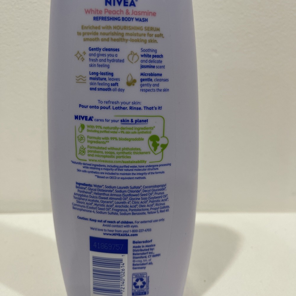 Indulge in the luxurious lather of NIVEA's Refreshing White Peach Body Wash, a blend of nourishing serum and gentle cleansing agents designed for unisex use. Perfect for those with dry skin, this 20 fl oz bottle promises a hydrating experience, infusing your skin with the essence of jasmine and the vitality of vitamins. Crafted in the United States, this all-natural formula offers a delicate balance of comfort and efficacy. The product's design, featuring a pack of one regular-sized bottle, ensures easy storage and usage, fitting seamlessly into your daily bath and body routine. Embrace the promise of a revitalized tomorrow with every use.