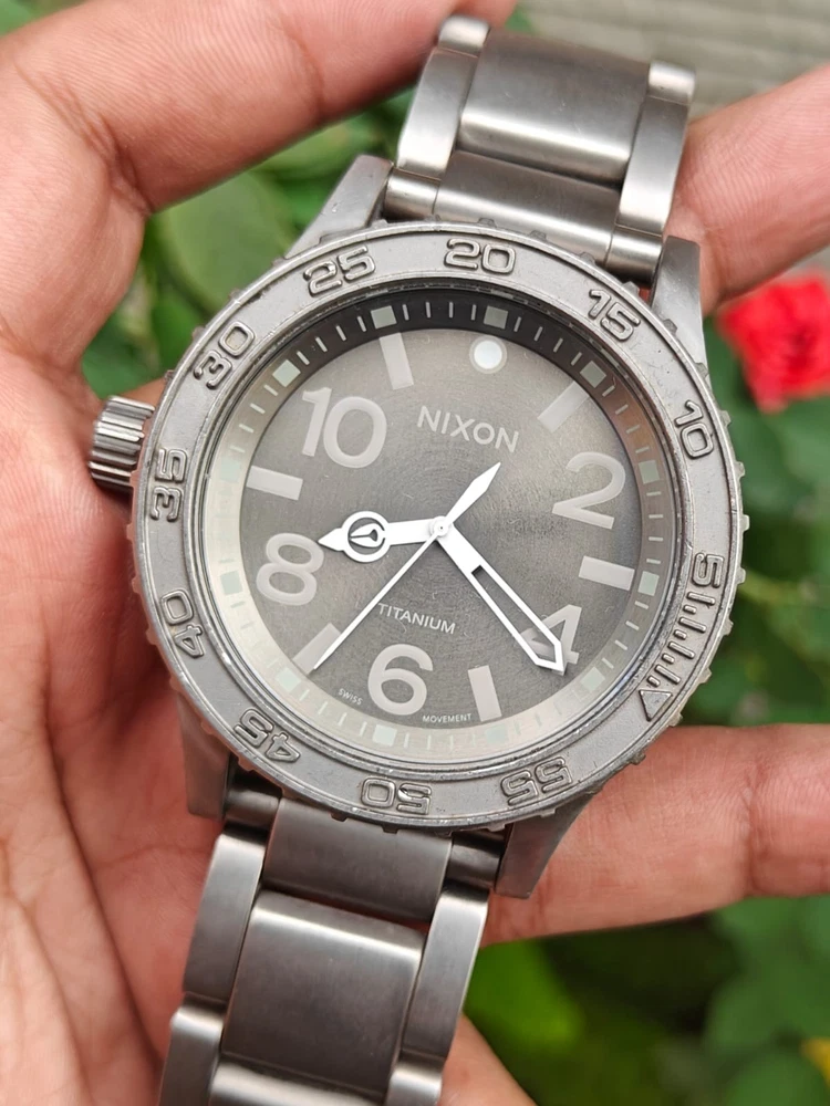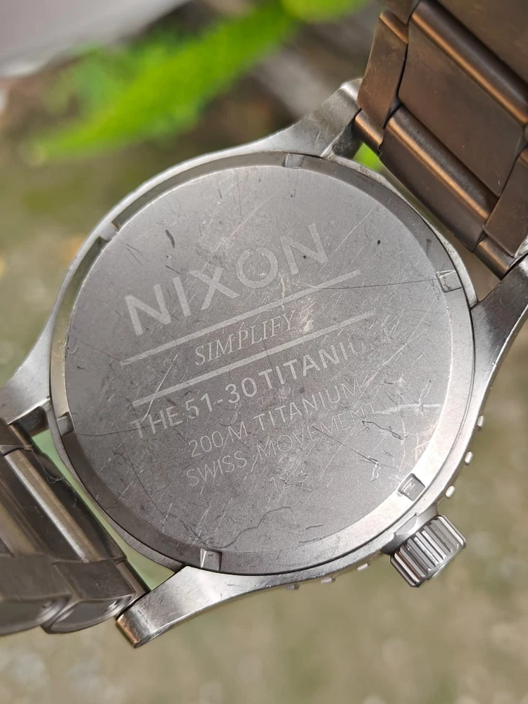 NIXON Simplify The 51-30 TI Titanium Swiss Movt Men's Watch 51MM Approximate Measurements: Case Size With Crown: 56.6mm Case Size Without Crown: 51mm Lug to Lug Width: 60mm Movement: Quartz Item Condition: The Watch is in fully Working Condition. It Comes With Genuine Bracelet. It has less signs of usage. You can see the photos for more details. Photos are also a part of description. Shipping Worldwide: Fed Ex UPS Charges:$25 Takes only 12 to 23 Days. for remote area buyer has to pay $30 additional . N Respected Buyers Please Read Before Buying an item: Please make sure you have seen all the photos and read the description. I have attempted my best to describe the actual condition of watch as much always here to give the best possible reply to our respected buyers. > Buyer Is Responsible for any import taxes. > We do not test watches for waterproof. This item is use. Please carefully inspect our photographs. We have tried to describe this item as accurately as possible. However. It may contain small imperfections that are difficult to show in photog Please Fell Free To Give Offer. We Accept Offer. But please don't devalue I balling. Grateful to You Visited My Watch house. Buy With Confidence RETURN POLICY: If The Item is not Described as description.