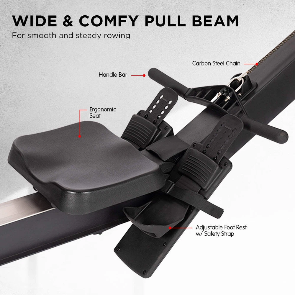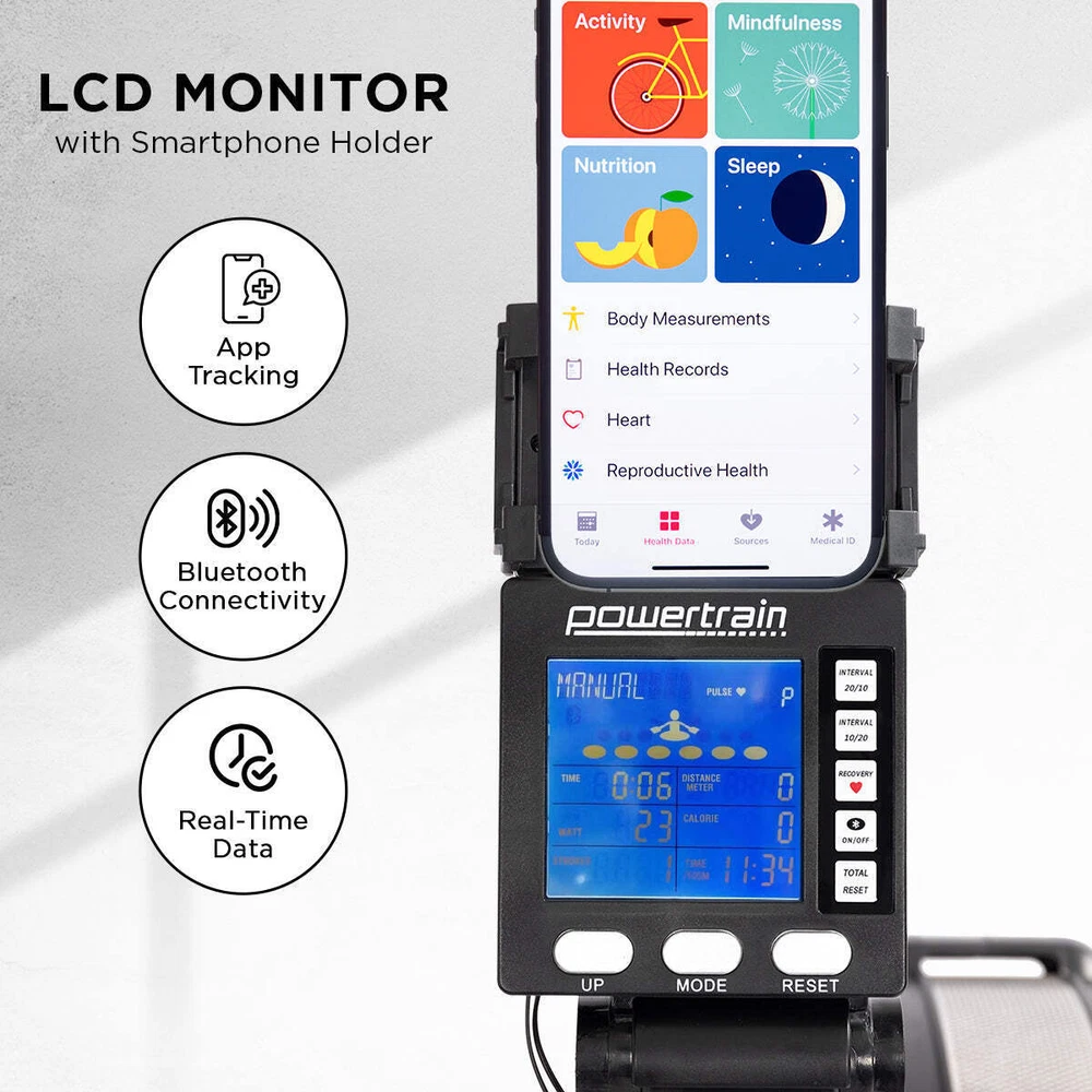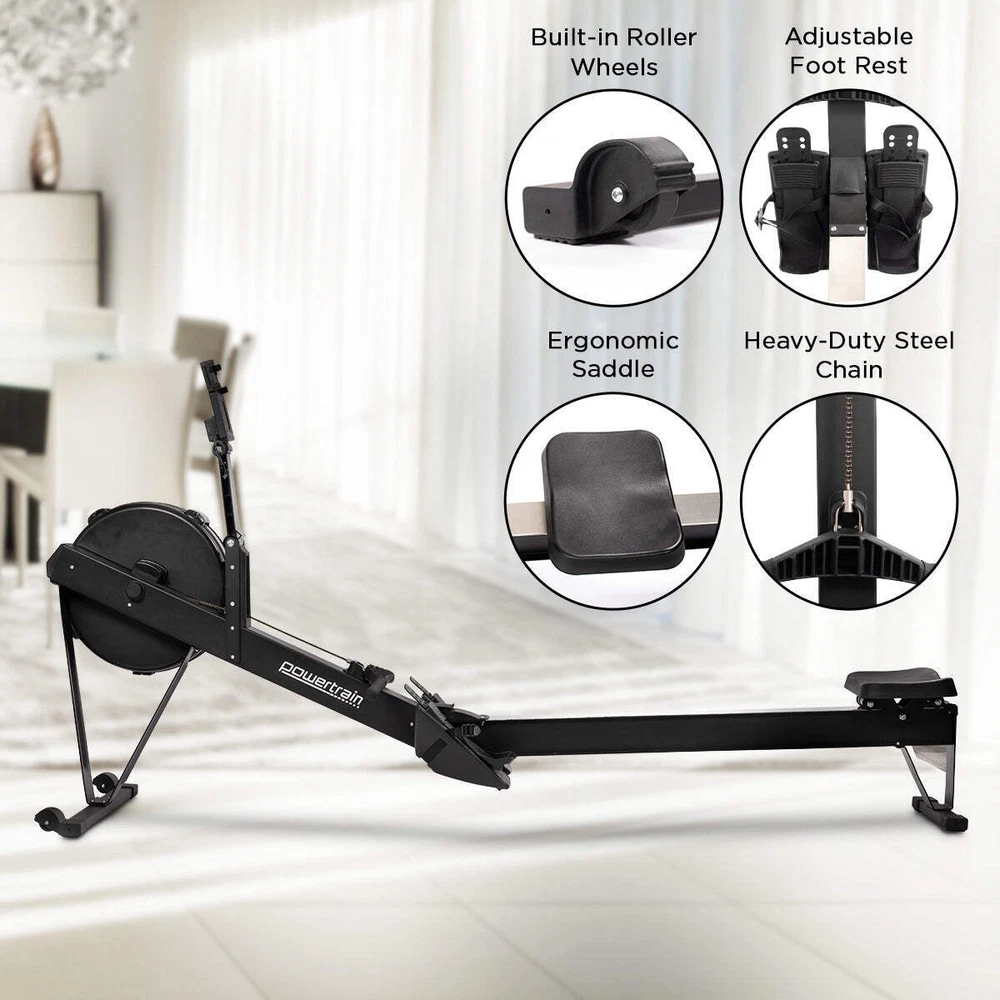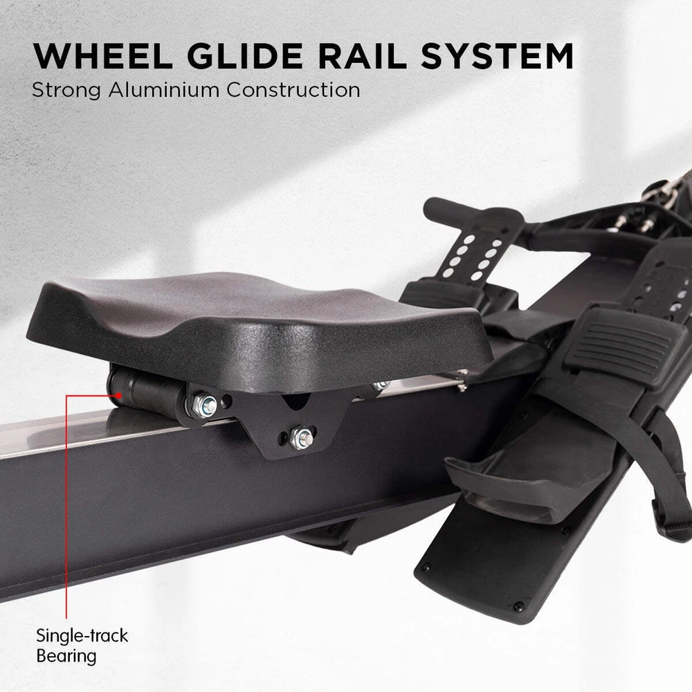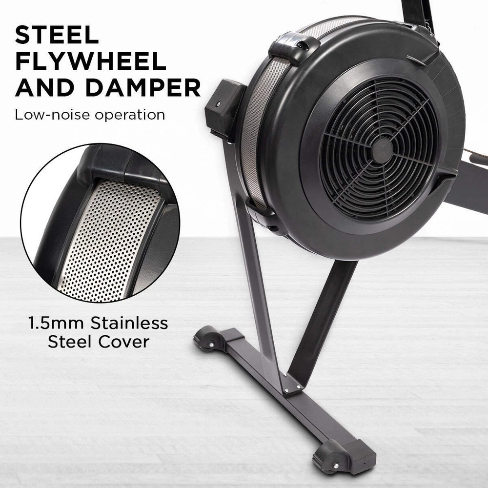 NNEDPE Air Rowing Machine Resistance Rower for Home Gym Cardio Looking for a low-impact way to exercise? Then you'll love the Powertrain Air Rowing Machine. This rower has 10 air resistance levels so you can adjust the intensity, a backlit LCD screen with real-time data reporting and a Bluetooth-enabled console that connects to various fitness apps. It also features a contoured seat, adjustable footrest and ergonomic handle for more comfortable workouts. Built for daily training, this rower has an aluminium rail that can support a maximum weight of 200kg. It's sturdy and compact, with two interval training modes to switch up your cardio regimen. Built-in roller wheels allow for easy repositioning, and the frame can be dismantled for easy storage. The device holder is also handy for virtual rowing classes. Sturdy and compact, this rower is a great choice for home gym training. Work your whole body in just one session and get closer to beating those personal fitness records! FEATURES: * 10 air resistance levels * Max Weight Cap: 200kg * Tension: 30kg * Smooth, low-noise rowing * Intelligent tracking via FitSHOW or Fitlog app * Compatible with Kinomap - interactive workouts on demand * Backlit LCD monitor with real-time data display * Built-in device holder * Bluetooth connectivity * Manual and interval training modes * Space-saving - can be separated into two pieces for easy storage * Fan flywheel with damper * Ergonomic saddle seat * Adjustable heel rest * 2 integrated roller wheels * Dimensions: 240 x 62 x 123cm * Workout Feedback: Time, Strokes Per Minute, Watts, Strokes, Distance (Meters/Miles), Calories, Time per 500mCONTENTS: * 1 x Air Rowing Machine * 1 x User Manual * 4 x AA batteriesLooking for a low-impact way to exercise? Then you'll love the Powertrain Air Rowing Machine. This rower has 10 air resistance levels so you can adjust the intensity, a backlit LCD screen with real-time data reporting and a Bluetooth-enabled console that connects to various fitness apps. It also features a contoured seat, adjustable footrest and ergonomic handle for more comfortable workouts. Built for daily training, this rower has an aluminium rail that can support a maximum weight of 200kg. It's sturdy and compact, with two interval training modes to switch up your cardio regimen. Built-in roller wheels allow for easy repositioning, and the frame can be dismantled for easy storage. The device holder is also handy for virtual rowing classes. Sturdy and compact, this rower is a great choice for home gym training. Work your whole body in just one session and get closer to beating those personal fitness records!FEATURES: 10 air resistance levels Max Weight Cap: 200kg Tension: 30kg Smooth, low-noise rowing Intelligent tracking via FitSHOW or Fitlog app Compatible with Kinomap - interactive workouts on demand Backlit LCD monitor with real-time data display Built-in device holder Bluetooth connectivity Manual and interval training modes Space-saving - can be separated into two pieces for easy storage Fan flywheel with damper Ergonomic saddle seat Adjustable heel rest 2 integrated roller wheels Dimensions: 240 x 62 x 123cm Workout Feedback: Time, Strokes Per Minute, Watts, Strokes, Distance (Meters/Miles), Calories, Time per 500m CONTENTS: 1 x Air Rowing Machine 1 x User Manual 4 x AA batteries NNEDPE Air Rowing Machine Resistance Rower for Home Gym Cardio Looking for a low-impact way to exercise? Then you'll love the Powertrain Air Rowing Machine. This rower has 10 air resistance levels so you can adjust the intensity, a backlit LCD screen with real-time data reporting and a Bluetooth-enabled console that connects to various fitness apps. It also features a contoured seat, adjustable footrest and ergonomic handle for more comfortable workouts. Built for daily training, this rower has an aluminium rail that can support a maximum weight of 200kg. It's sturdy and compact, with two interval training modes to switch up your cardio regimen. Built-in roller wheels allow for easy repositioning, and the frame can be dismantled for easy storage. The device holder is also handy for virtual rowing classes. Sturdy and compact, this rower is a great choice for home gym training. Work your whole body in just one session and get closer to beating those personal fitness records! FEATURES: * 10 air resistance levels * Max Weight Cap: 200kg * Tension: 30kg * Smooth, low-noise rowing * Intelligent tracking via FitSHOW or Fitlog app * Compatible with Kinomap - interactive workouts on demand * Backlit LCD monitor with real-time data display * Built-in device holder * Bluetooth connectivity * Manual and interval training modes * Space-saving - can be separated into two pieces for easy storage * Fan flywheel with damper * Ergonomic saddle seat * Adjustable heel rest * 2 integrated roller wheels * Dimensions: 240 x 62 x 123cm * Workout Feedback: Time, Strokes Per Minute, Watts, Strokes, Distance (Meters/Miles), Calories, Time per 500m CONTENTS: * 1 x Air Rowing Machine * 1 x User Manual * 4 x AA batteries Looking for a low-impact way to exercise? Then you'll love the Powertrain Air Rowing Machine. This rower has 10 air resistance levels so you can adjust the intensity, a backlit LCD screen with real-time data reporting and a Bluetooth-enabled console that connects to various fitness apps. It also features a contoured seat, adjustable footrest and ergonomic handle for more comfortable workouts. Built for daily training, this rower has an aluminium rail that can support a maximum weight of 200kg. It's sturdy and compact, with two interval training modes to switch up your cardio regimen. Built-in roller wheels allow for easy repositioning, and the frame can be dismantled for easy storage. The device holder is also handy for virtual rowing classes. Sturdy and compact, this rower is a great choice for home gym training. Work your whole body in just one session and get closer to beating those personal fitness records! FEATURES: 10 air r