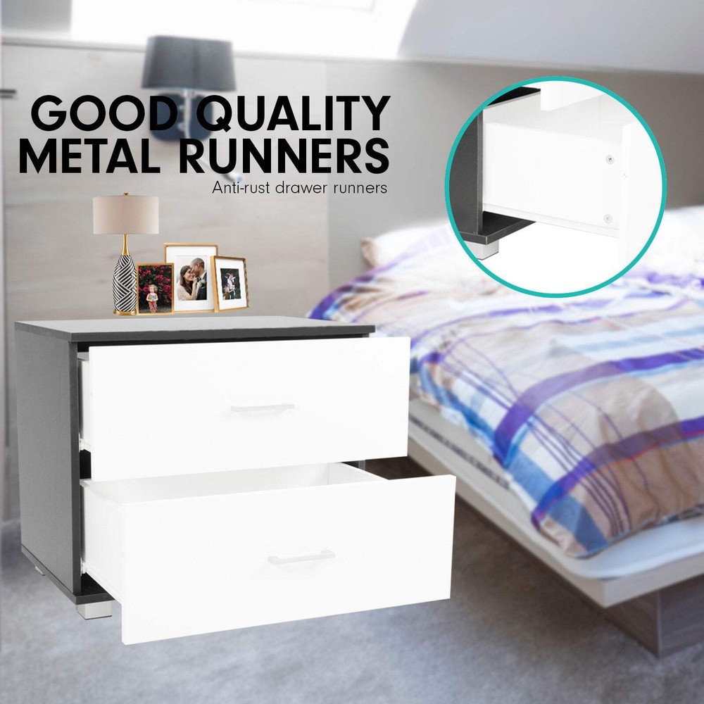 NNEDSZ Sarantino Bedside Table Cabinet Storage Chest 2 Drawers Lamp Side Nightstand White Black The practical design consists of two large drawers, plenty of space to store your personal accessories and knick knacks. It features MDF panels with anti-rust coated metal draw runners and contemporary looking square handles. An elite in quality and design, it's the perfect addition to every home. FEATURES: Matte Finish Modern stylish design Solid construction 15mm MDF panels 96mm Contemporary handles Equipped with plastic legs Anti-rust coated metal draw runners Assembly required CONTENTS: 1 x Bed Side Drawer NNEDSZ Sarantino Bedside Table Cabinet Storage Chest 2 Drawers Lamp Side Nightstand White Black The practical design consists of two large drawers, plenty of space to store your personal accessories and knick knacks. It features MDF panels with anti-rust coated metal draw runners and contemporary looking square handles. An elite in quality and design, it's the perfect addition to every home. FEATURES: Matte Finish Modern stylish design Solid construction 15mm MDF panels 96mm Contemporary handles Equipped with plastic legs Anti-rust coated metal draw runners Assembly required CONTENTS: 1 x Bed Side Drawer × × × × × × × Buy now and save! Shipping info Click the Shipping & Payments tab above the listing description for more info Click the Shipping & Payments tab above the listing description for more info! Additional delivery notes PICK UP OPTION Our items are available for pick-up. Pick up procedure is as follows: Purchase the item through eBay Email us to coordinate pickup PAYMENT Immediate payment is required upon selecting "Buy It Now" or upon checking out through the cart. We accept payment via All Major Credit Cards (Visa, Mastercard, AMEX, Discover), Google Pay, PayPal, & Apple Pay (on mobile & eBay App). Thank you for shopping with us on eBay! Additional Information No additional information at this time Ask seller a question You might also like NNEVL Bed Cabinet Smoked Oak 40x40x63 cm Engineered Wood NNEVL Shoe Cabinet Black 102x36x60 cm Engineered Wood NNEVL Dog Bed White 61.5x49x9 cm Solid Wood Pine NNEVL Wall Mirror Black 100x60 cm Metal Contact To contact our Customer Service Team, simply click the button here and our Customer Service team will be happy to assist. Ask seller a question © NNE Furniture Shipping & Payments Click the Shipping & Payments tab above the listing description for more info Payment Accepted Payment Methods Immediate payment is required upon selecting "Buy It Now" or upon checking out through the cart. We accept payment via All Major Credit Cards (Visa, Mastercard, AMEX, Discover), Google Pay, PayPal, & Apple Pay (on mobile & eBay App). Thank you for shopping with us on eBay! Returns Returns are not accepted Seller will pay for return shipping. eBay integration by