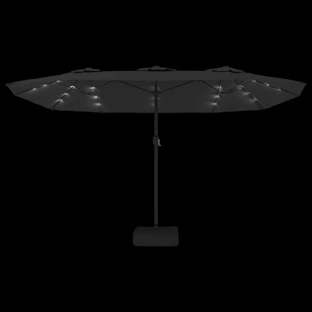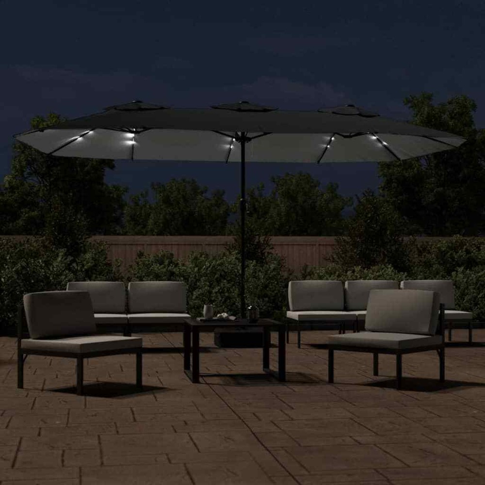 NNEVL Double-Head Parasol with LEDs Anthracite 449x245 cm This elegant double-head garden parasol with LEDs is a perfect choice for creating some shade and protecting you from the sun's harmful UV rays. Durable material: Made of UV-protective and anti-fade polyester, the garden parasol provides you with optimum protection against the sun and is easy to clean.Sturdy frame: The strong powder-coated iron pole, along with durable ribs, makes the garden umbrella very stable and sturdy.Bright LED lights: The integrated LED lights of the umbrella illuminate your outdoor living space and create a cosy and romantic ambience when the sun goes down.Crank mechanism: Thanks to the crank mechanism, the umbrella can be easily opened and closed.Strong base: The base with the sandbag makes sure the parasol is sturdy and stable even in strong wind and heavy rain. Colour: Anthracite, dark grey Material: Fabric (100% polyester), powder-coated iron Dimensions: 449 x 265 x 245 cm (L x W x H) Pole diameter: 48 mm Features 3 LED lights on each rib and a LED lights panel in middle Features a base with sandbag Assembly required: Yes Colour: Anthracite, dark grey Material: Fabric (100% polyester), powder-coated iron Dimensions: 449 x 265 x 245 cm (L x W x H) Pole diameter: 48 mm Features 3 LED lights on each rib and a LED lights panel in middle Features a base with sandbag Assembly required: Yes NNEVL Double-Head Parasol with LEDs Anthracite 449x245 cm This elegant double-head garden parasol with LEDs is a perfect choice for creating some shade and protecting you from the sun's harmful UV rays. Durable material: Made of UV-protective and anti-fade polyester, the garden parasol provides you with optimum protection against the sun and is easy to clean.Sturdy frame: The strong powder-coated iron pole, along with durable ribs, makes the garden umbrella very stable and sturdy.Bright LED lights: The integrated LED lights of the umbrella illuminate your outdoor living space and create a cosy and romantic ambience when the sun goes down.Crank mechanism: Thanks to the crank mechanism, the umbrella can be easily opened and closed.Strong base: The base with the sandbag makes sure the parasol is sturdy and stable even in strong wind and heavy rain. Colour: Anthracite, dark grey Material: Fabric (100% polyester), powder-coated iron Dimensions: 449 x 265 x 245 cm (L x W x H) Pole diameter: 48 mm Features 3 LED lights on each rib and a LED lights panel in middle Features a base with sandbag Assembly required: Yes Colour: Anthracite, dark grey Material: Fabric (100% polyester), powder-coated iron Dimensions: 449 x 265 x 245 cm (L x W x H) Pole diameter: 48 mm Features 3 LED lights on each rib and a LED lights panel in middle Features a base with sandbag Assembly required: Yes × Buy now and save! Shipping info Click the Shipping & Payments tab above the listing description for more info Click the Shipping & Payments tab above the listing description for more info! Additional delivery notes PICK UP OPTION Our items are available for pick-up. Pick up procedure is as follows: Purchase the item through eBay Email us to coordinate pickup PAYMENT Immediate payment is required upon selecting "Buy It Now" or upon checking out through the cart. We accept payment via All Major Credit Cards (Visa, Mastercard, AMEX, Discover), Google Pay, PayPal, & Apple Pay (on mobile & eBay App). Thank you for shopping with us on eBay! Additional Information No additional information at this time Ask seller a question You might also like NNEVL Sideboard White 100x30x59.5 cm Engineered Wood NNEVL Bed Cabinet Smoked Oak 40x40x63 cm Engineered Wood NNEVL Shoe Cabinet Black 102x36x60 cm Engineered Wood NNEVL Dog Bed White 61.5x49x9 cm Solid Wood Pine Contact To contact our Customer Service Team, simply click the button here and our Customer Service team will be happy to assist. Ask seller a question © NNE Furniture Shipping & Payments Click the Shipping & Payments tab above the listing description for more info Payment Accepted Payment Methods Immediate payment is required upon selecting "Buy It Now" or upon checking out through the cart. We accept payment via All Major Credit Cards (Visa, Mastercard, AMEX, Discover), Google Pay, PayPal, & Apple Pay (on mobile & eBay App). Thank you for shopping with us on eBay! Returns Returns are not accepted Seller will pay for return shipping. eBay integration by
