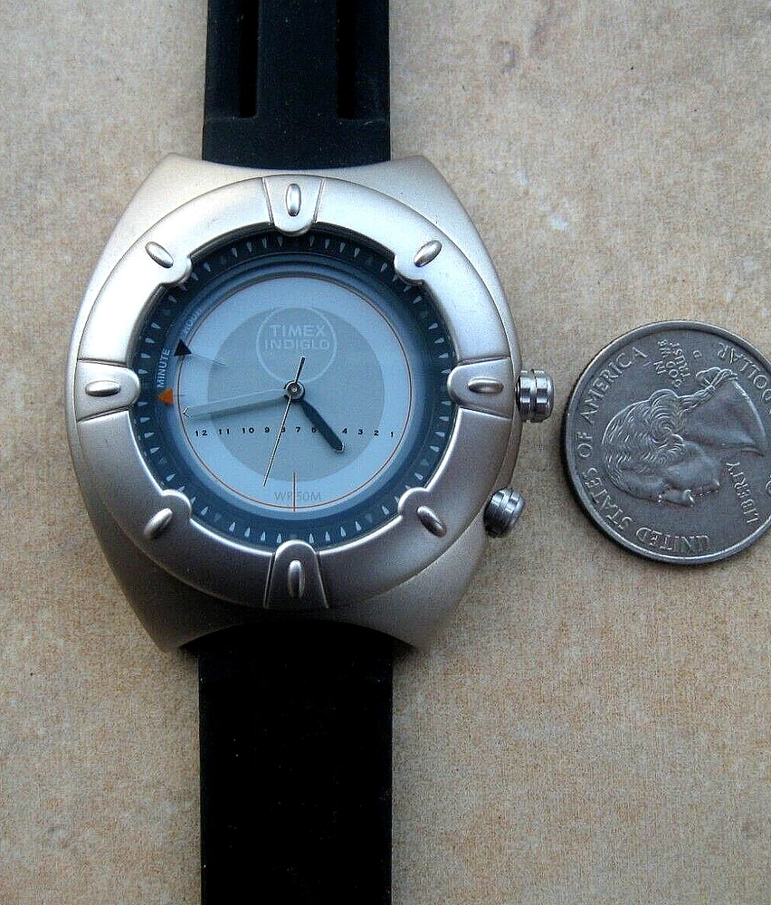 NO RESERVE. HIGH BID TAKES IT. THIS ONE HAS NO WEAR. STILL HAS CLEAR COVER ON BACK. HIGH BID WINS. MADE IN THE 1990'S. INDIGLO NITELITE. MENS 38MM TIMEX IN MINT CONDITION. WHAT YOU SEE IS WHAT YOU GET. NO SCRATCHES/ NO WEAR. NEW 5 YEAR BATTERY JUST INSTALLED. KEEPS ACCURATE TIME. NEW RUBBER STRAP FITS UP TO 8'' WRIST. THANKS FOR LOOKING AND PLEASE LEAVE POSITIVE FEEDBACK.